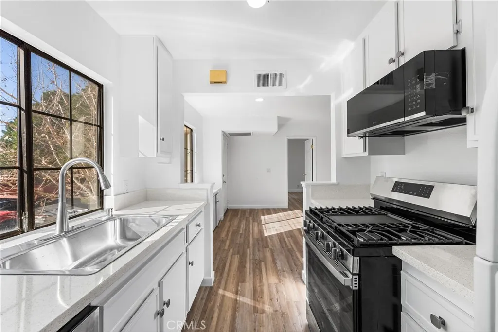 PRICE IMPROVEMENT !!! This turn key condo won't last much longer! Welcome to this newly renovated 1 bed, 1 bath condo in the well known gated community of Monte Vista in Palmdale. This is the perfect starter home for a single person or a young couple or anyone looking to downsize. It offers comfort and a lot of amenities for your buck with new flooring throughout. New granite counter tops, new recess lighting, new window treatments, stainless steel stove, dishwasher and microwave, new light fixtures, new bathroom vanity, new faucets, freshly painted. It also has central AC and Heating with a new smart thermostat and it has its own laundry area with a washer and dryer already in place as well as a private balcony. This community offers 24 hour security, an inviting swimming pool for the hot summer days , spa and additional laundry areas. Its very close to shopping, local transportation and just a few min from the 14 Fwy. Everything you need within a few min. Come take a look and fall in love, do not miss the opportunity to own this little gem in the heart of Palmdale.