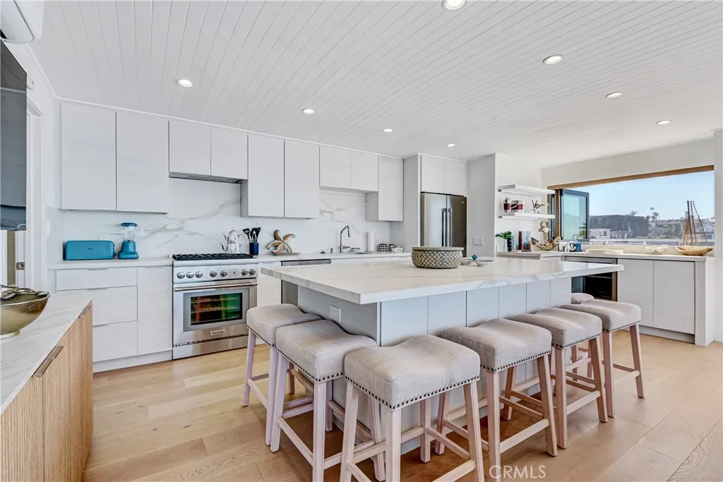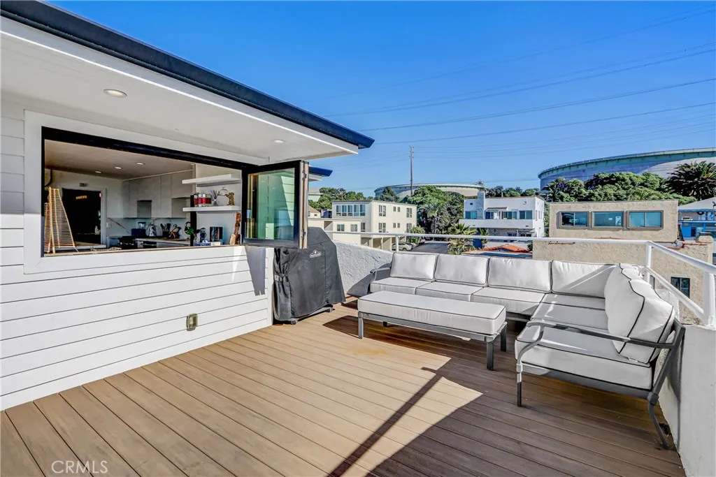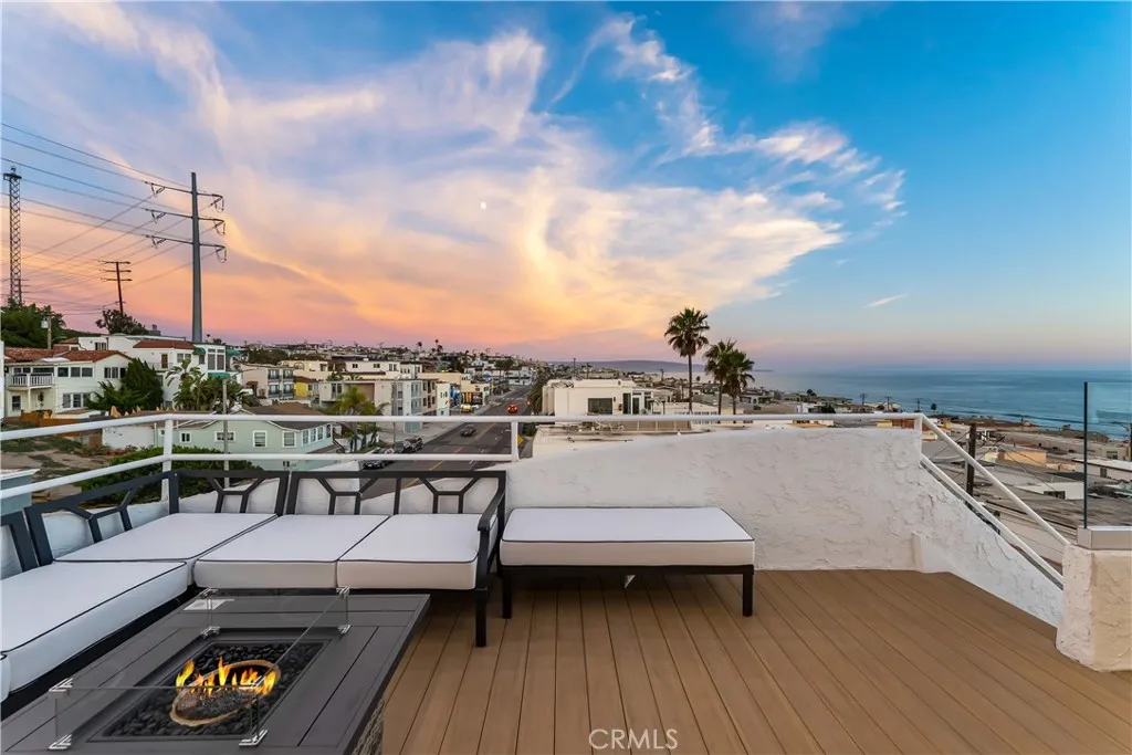 Elevated! Introducing CasaBella Luxury Beach houses. A luxuriously reimagined Vintage building is home to this very special Short Term Rental just a block to the sand in North Manhattan. The Penthouse is like an oceanfront hotel room in the sky (if Manhattan Beach only had such things). The views would be envied by anyone in Manhattan Beach: the entire Santa Monica Bay, laid out in front of you with whitewater, Catalina, Santa Monica, Palisades and Malibu views. Mesmerizing is an understatement. Available at $1,000 a night for Short term (minimum 3 Days). Sleep 4 people comfortably, but it's more romantic for two. The stunning completely open floor plan is centered around the kitchen with its island table that seats 8. Walls of glass open completely to the awe-inspiring vistas, as the sound of waves lapping on the shore calm your senses. Stainless steel appliances, gleaming white cabinets, and white oak hardwood floors punctuate this iconic space. The bath is beautifully appointed, with a sumptuous walk in shower. A wrap-around deck with lots of outdoor seating and a fire feature provide unheard of outdoor living space from which to revel in this experience. This is an absolutely epic, unrivaled beach retreat, with air conditioning and two car tandem parking. Imagine this spot for a staycation, a place to hang out while your home is being renovated, a perfect guest spot for long or short term visitors, and of course World Cup and Olympics. Stay a day, a week, a month or longer. Enjoy all that Manhattan Beach ha# to offer in restaurants, shopping, dining, exercise and entert