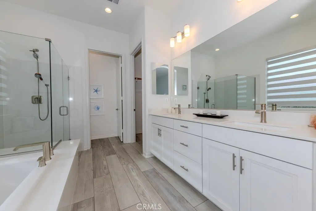 Beautiful, spacious single story house is better than new with upgrades throughout! Premium private location with hills view. 2 Bedrooms, 2 full baths plus an open home office that can easily be made into a 3rd bedroom. Located in the middle of a quiet street with no homes behind and only one next door. This popular floor plan is completed with designer finishes at the active adult 55+ community Irontree at guard gated Terramor located in the Temescal Valley. This highly upgraded home has a light and open floor plan. Upgraded plank tile flooring throughout. Custom window coverings. Upgraded lighting. The wonderful kitchen boasts a spacious island/breakfast bar, designer selected quartz countertops and back splash, upgraded stainless appliances and upgraded white cabinets with pull-out drawers.The master bedroom offers an upgraded soaking tub and separate shower and spacious walk-in closet. Step through the sliding door from the dining room onto a private covered patio to entertain. Paid off solar power system is included. Indoor laundry room, tankless water heater, 2-car attached garage, tile roof and a smart water conserving sprinkler system. The Private, gated Terramor community HOA amenities includes parks, dog parks and walking trails. This home provides exclusive membership in The Terrace Club facility nearby with an indoor and outdoor pool, a gym and wellness studio, clubhouse, sauna, pickleball, tennis and bocce ball courts.This home is better than new and you can move right in!