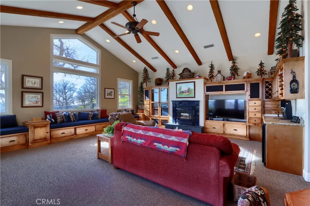 CUSTOM HOME PERCHED effectively capturing breathtaking panoramic views, this beautifully appointed 3-bedroom, 4-bath residence offers 3,873 Sq. Ft of light-filled living space designed for comfort and entertaining. A welcoming front porch sets the tone, while expansive windows throughout frame stunning hillside and valley vistas. The home features generous living and dining areas, a well-appointed kitchen, and seamless indoor-outdoor flow. Granite counter tops W/ various areas of storage, walk-in pantry, exercise room plus large attic access. Custom lighting accentuates all the well placed built-ins thought out this well appointed home. The resort-style pool, custom built-in BBQ, ample room for family and friends is perfect for relaxing or hosting gatherings while soaking in the scenery. Bring your green thumb for the garden area and as well as the several fruit trees to savor. Thoughtfully designed with ample space, charm, and privacy, this exceptional property offers a rare opportunity to enjoy tranquil living with unforgettable views. Call your Realtor for your private showing.