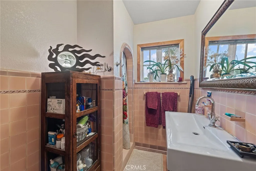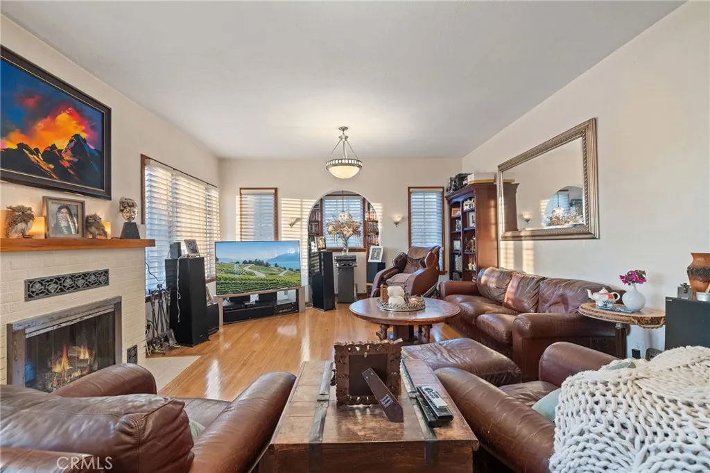 Escape to timeless elegance in this approximately 2,327 sq ft Art Deco-style two-story residence, perched on an expansive ~18,747 sq ft lot with a sparkling backyard oasis. Rich architectural details meet modern comforts and classic Spanish charm, creating a welcoming sanctuary for comfortable living and entertaining. Inside, the living room welcomes you with an arched doorway, beautiful hardwood pocket doors, high ceilings, a standout fireplace, and hardwood floors. An adjacent seating areathrough another set of wood pocket doorsprovides a perfect space for hosting guests before a formal dining room thats sized for large gatherings. On the main floor, youll find a generously sized bedroom and a 3/4 bathroom featuring original tile, an arched shower entrance, and a pedestal sink. A grand wood staircase leads to the upper level, where the primary bedroom offers two walk-in closets, built-in dressers and cabinets, and a tranquil pool view. A second bedroom upstairs shares a full bathroom with more original tile and a soaking tub. The private backyard feels like a resort: a gated Grecian-style pool with a spa, a large covered cabana with skylightsideal for al fresco dining and entertainingand lush landscaping with fruit trees, including a prominent avocado tree. Additional highlights feature a gated driveway, an attached two-car garage, and more than 42 bright windows that flood the home with light. A basement adds generous storage and a laundry area. Set on a peaceful, generously sized lot that complements the homes enduring, timeless appeal.