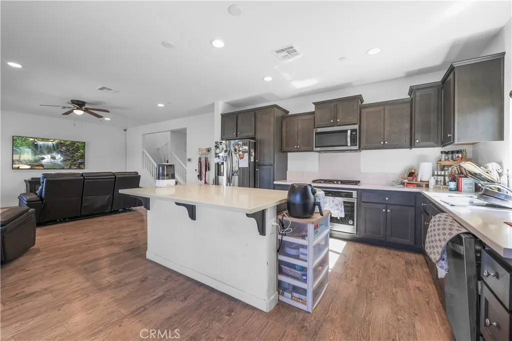 PRICE IMPROVEMENT VA ASSUMABLE OPPORTUNITY AVAILABLE Beautiful 5-bedroom, 3-bath home built in 2020 and located in one of Murrietas most desirable neighborhoods. This functional floor plan features a full bedroom and full bathroom downstairs, ideal for guests, multi-generational living, or a home office. The open-concept layout connects the kitchen, dining, and living spaces, creating a comfortable environment for everyday living and entertaining. Upstairs includes spacious secondary bedrooms, a convenient laundry room, and a primary suite with scenic views and a double-vanity bathroom. The backyard is designed for enjoyment with a full-length patio cover spanning nearly the entire backyard, complete with recessed lighting and ceiling fan perfect for outdoor gatherings year-round. Additional features include leased solar, gutters, a 2-car garage, and close proximity to the I-15 freeway. Located in a highly rated school district with Murrieta Valley High School within walking distance. Seller offering qualified Veterans the opportunity to assume the current VA loan at a favorable interest rate. Schedule your private showing today.