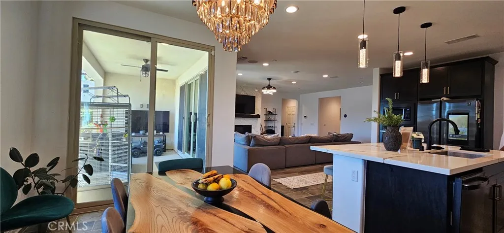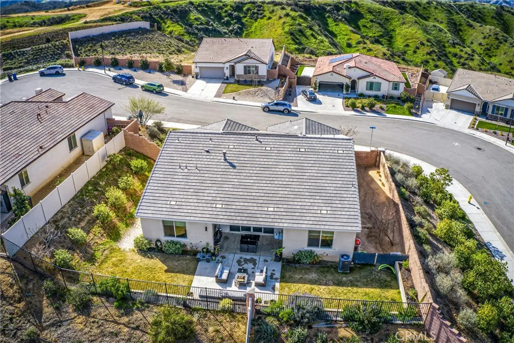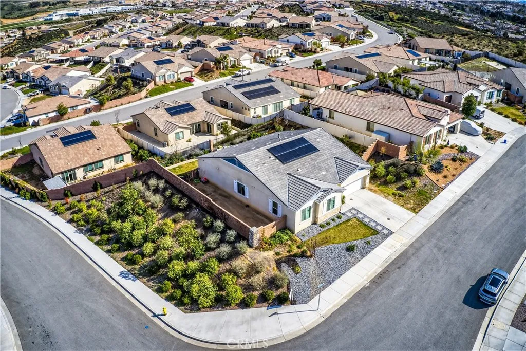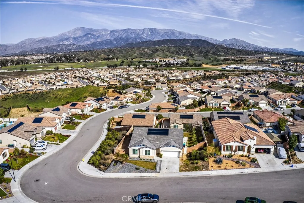 Introducing 1512 Yucca Ct in beautiful Calimesa a multi-generational Single Story home built in 2021 with 3 BD, 2.5 BA, and a flex room. Perched in an elevated setting, this home captures unobstructed panoramic mountain views, open skies and evening lights to enjoy everyday! Even better this home comes equipped with PAID SOLAR, providing long-term energy savings & protect you from rising electricity costs. Combined with EV charging capability in the garage, also offers the perfect blend of sustainability, convenience, and energy savings for homeowners. Step inside to an open-concept floor plan, with brand new Luxury Vinyl flooring, designed to feel both elegant and welcoming. Expansive windows and sliding glass doors frame the stunning views while filling the home with natural light. The inviting gas fireplace creates a warm focal point for gatherings or quiet evenings. Just off the main living area, a flexible entertainment space provides endless possibilitieswhether you envision a billiards lounge, wine room or a home office. The gourmet kitchen is the heart of the home, beautifully appointed with quartz countertops, an upgraded built-in range, custom cabinetry, designer lighting, and a spacious walk-in pantry. It flows effortlessly into the dining and great room areas, perfect setting for hosting family celebrations & dinner parties. The great room opens to a covered patio, seamlessly blending indoor and outdoor living. The expansive 11,761 sq ft lot is surrounded by flowering plants and fruit-bearing trees, offering plenty of space to relax, entertain, or envision fut