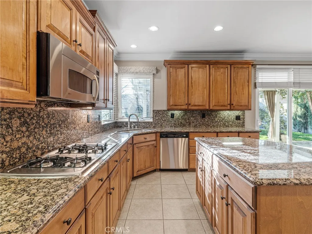 Huge Price Adjustment! Paseo La Cresta is a Highly sought after Gated Community in Apple Valley. This home shows beautifully with attention to detail everywhere you look with so many upgrades.Featuring a Gourmet Kitchen with custom built Island,Stainless Steel Appliances,Granite Counters, pantry, and Maple Cabinetry through-out home. You will appreciate the custom Lighting in the large living room with vaulted ceilings. Just off the kitchen Enjoy the cozy Family room with a built in Maple Bookcase and a warming fireplace. This home offers lots of storage space...also featuring Clerestory Windows, beautiful wood flooring in living room and family room, pot shelving, crown molding. 6 inch baseboards, dramatic 22 foot raised ceilings, internet, cable and alarm prewired or wireless. Upstairs the main bedroom boasts a large walk in closet, and elegant ensuite bath with garden tub and separate shower. All Bedrooms feature walk-in closets. One of the bedrooms has a small adjacent bonus room that offers many possibilities...office, kids play room, exercise room or just storage space. The large rear yard has a covered patio. Community offers a pool,out door cooking area and basket ballcourt.Looking for a quiet upscale neighborhood, this home is for you.