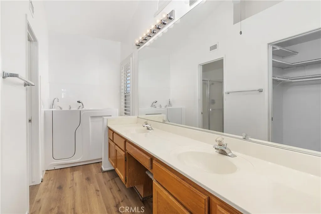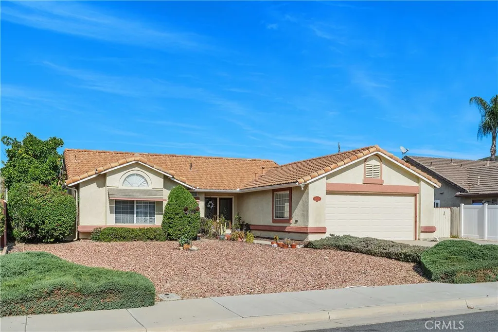 Back on the Market! Featuring new photos and an updated interior with fresh paint and carpet, this 2-bedroom, 2-bath single-story home offers 1,770 sq. ft. of comfortable living in the desirable 55+ Serenade community in MenifeeWITH NO HOA DUES! The property also includes RV access, parking, and hook-ups. Step inside to a bright, open floor plan with high ceilings, a formal dining area, and a spacious living room centered around a cozy fireplace. Plantation shutters throughout add style and privacy. A sliding glass door leads to a permitted sunroom with new flooring, creating a space ideal for relaxing, reading, or entertaining. The sunroom conveniently connects both the living room and backyard patio. The kitchen is designed for both function and comfort, featuring Corian countertops, tile flooring, ample cabinetry, and space for a breakfast nook. A sliding door provides direct access to the covered patio, complete with an Alumawood cover for outdoor enjoyment year-round. Adjacent to the kitchen, the indoor laundry room includes a washer and dryer and offers direct access to the attached two-car garage. The garage is well-equipped with a workbench, shelving, utility sink, and additional storage. The generously sized primary suite includes a cedar-lined closet and an en-suite bathroom with dual sinks, high windows for natural light, a walk-in closet, and a relaxing hydro-massage tub. The guest bedroom features high ceilings and is located near a separate full bathroom, making it ideal for visitors or a live-in caregiver. Outside, the front yard is designed for low-maintenan