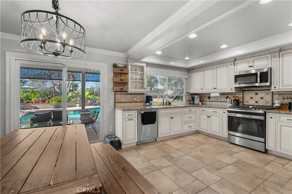 Price Improvement for a quick sale. Seller has found replacement property. Welcome to 2620 S. Quaker Ridge Place, tucked into a quiet cul-de-sac on over 9,500 sq ft of usable property. With soaring vaulted ceilings, crown molding, and wainscoting create a bright, open feel that carries throughout the living and kitchen space. The layout is designed for real living and entertaining, featuring stainless steel appliances, a walk-in pantry/storage closet under the stairs, downstairs half bath, fresh paint, and a stylish ship-lapped rock fireplace that anchors the room. Natural light pours in through dual-pane windows with wooden shutters and blinds, while energy-efficient lighting. And a built-in coffee/bar area. Step outside to your tropical backyard escape. This entertainers yard features a large aluminum patio cover with built-in gutters, electrical, and dual fans, plus a pool with diving board and upgraded equipment including a new filter, variable-speed pump, and vacuum. Youll also find a fire pit, two storage sheds, RV parking, a dog run with doggie door. The yard has mature fruit trees including lemon, apple, orange, pear, plum, peach, and pomegranate, grapes, blackberries, aloe, elephant ears, and succulents. Energy efficiency shines with owned solar installed in 2019 (25 panels). Solar payments average about $250 monthly. Sellers are contributing $10,000 toward the remaining 27k solar balance. The garage has been upgraded with epoxy flooring and a second-level storage platform with conversion potential. Currently set up as a workshop, it includes a mini-split AC system