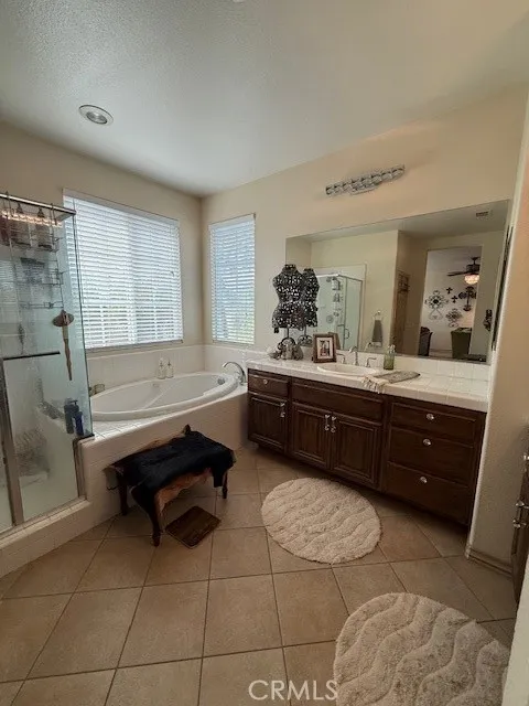 Beautiful 4BD/3BA Spanish-style home in the prestigious gated and 24-hour patrolled Shady Trails community of North Fontana. Situated on a private wrap-around corner lot with Italian Cypress, fruit-bearing olive trees, and scenic mountain views. Features include custom lighting and cabinetry, Viking appliances, granite countertops, wood flooring, hand-crafted barn doors, custom paint, and custom vanities in secondary baths. Open floor plan with striking loft and abundant natural light. Spacious primary suite with sitting area, dual vanities, and large jetted tub. Enjoy year-round outdoor living with a full-length covered patio with pergola caps and a private gated courtyard with fountain. 2-car garage with tandem parking and storage. Resort-style community amenities include clubhouse, fitness center, pool, tennis courts, playground, and BBQ areas.