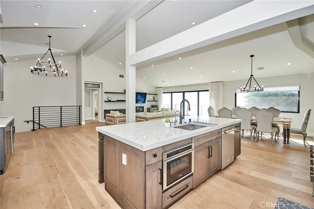Fully furnished w. high end furniture and appliance! Completely rebuild in 2021. Magnificent renovation in the most desirable Pacific Palisades Castellammare Mesa location. Stunning finishes to highlight a spectacular view of the ocean, coastline, hillside, Sunset Mesa and the Santa Monica Mountains. Impressive front curb appeal with exterior brick, plaster and board and batten finishes, mature privacy hedges, and designer double door entry that opens to a breath taking enormous living space with soaring high architectural ceilings over entire kitchen, dining, and living area, all looking out to a full length balcony, custom railing, VIEW and back yard. Chef's kitchen with complete upscale appliance package, massive cook's island, and Butler's Pantry all with extensive use of beautiful Quartz, and Marble! Dream master suite with view, spacious custom-built walk-in closet, 2nd closet and built-in cabinetry, gorgeous bath with, standing tub, oversized shower, and exquisite marble counters and tiles!! Three additional bedroom suites with luxurious baths as well, with matching lighting, custom mirrors and top of the line faucets. Custom designer railing on staircase leading down to an open entertainment room looking out to the uniquely landscaped backyard with huge patio and massive deck! From the front to the back and from the top to the bottom, this is a picture perfect package that stands out from all the rest!