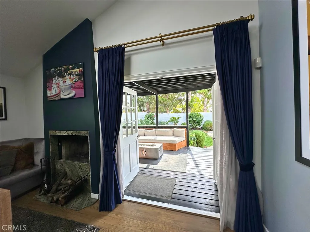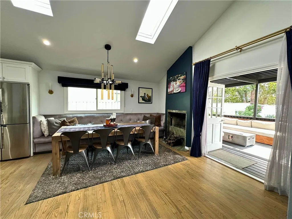 Pristine 3-bed/2-bath traditional home that has been loved & cared for. A light-filled, spacious living room with hardwood floors is open to a fully equipped gourmet kitchen with a stunning center island, stainless steel appliances, and immaculate cabinetry. The formal dining area with a custom tufted banquette, vaulted ceiling, and fireplace creates a cozy ambiance that is sure to impress family and friends. Astonishing primary suite with vaulted ceilings, a personal wood-burning fireplace, a walk-in closet, a bath with a soaking tub, and a separate shower. French doors open to a tranquil, recently re-landscaped backyard featuring a unique handmade outdoor seating area, a fire pit, a newly built covered patio, an outdoor television and entertainment area, and outdoor string lighting that can be controlled remotely via phone & Google/Amazon systems. The home features a smart thermostat, light switches in central living areas that are compatible with Google/Amazon systems, and new exterior landscape lighting in both the front and back yards, which includes remote/phone-controlled access and a timer system. Brand New electrical panels were installed in the residence and in the garage in the last year (with the ability to add solar). A new air conditioning condenser was installed in 2023. The exterior of the property has been newly painted, custom fencing has been installed, access for garbage storage and removal has been added (so your guests will not see it), and the garage has completely redone siding/stucco exterior. Complete perimeter security system with Nest Doorbell an