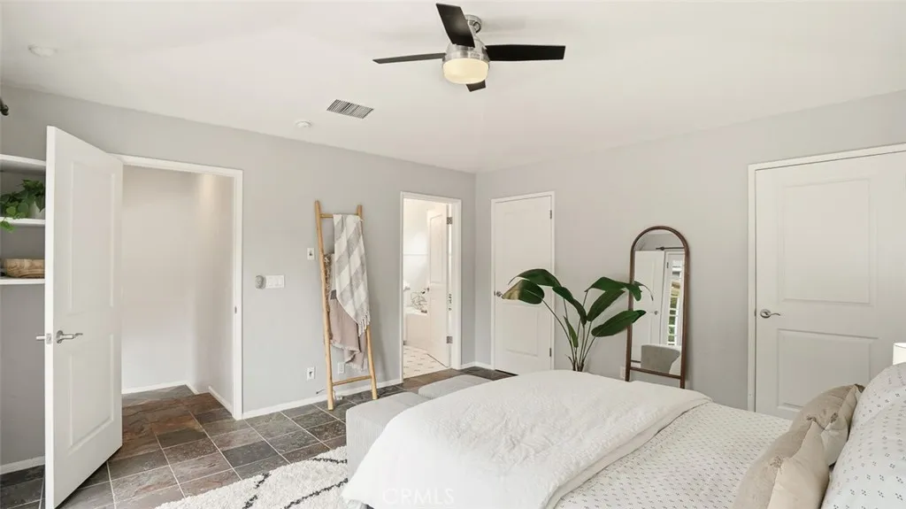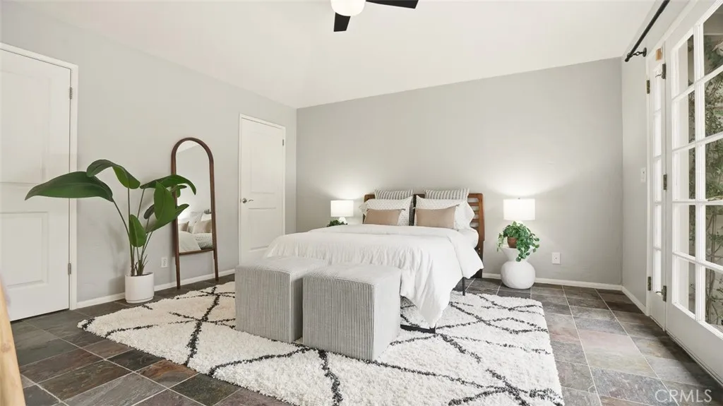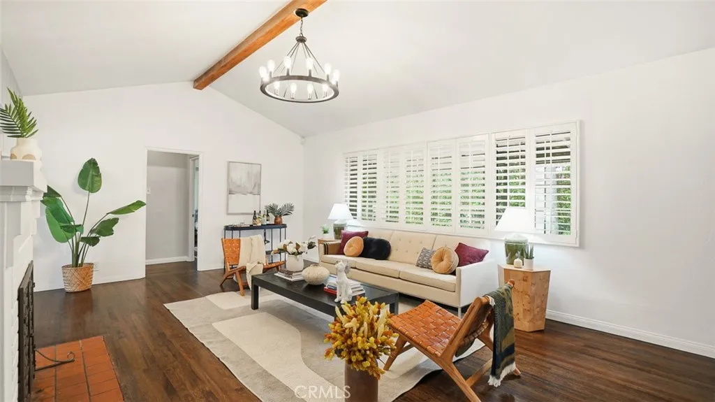 Tucked behind tall privacy hedges on a prime corner lot, this beautifully updated 3-bedroom + office, 3-bath ranch-style home offers effortless indoor-outdoor living in the heart of Sherman Oaks. Bathed in natural light, the thoughtfully designed floor plan blends classic charm with modern updates. A vaulted living room with beamed ceiling anchors the home, flowing seamlessly into a dining room that opens directly to the expansive backyard. The updated kitchen features Caesarstone countertops, stainless steel appliances, recessed lighting, and clean, timeless finishes. The spacious primary suite is a true retreat, complete with dual walk-in closets, French doors going out to the backyard, and a spa-inspired bath complete with soaking tub. Two generous secondary bedrooms and updated baths are thoughtfully positioned in a separate wing, while a detached office provides an ideal work-from-home setup or creative studio. Step outside to your own private oasis: a heated, covered saltwater pool and spa, built-in BBQ area, mature landscaping, and glowing bistro lights create the ultimate setting for entertaining or unwinding under the stars. Alley access to the two-car garage ensures both convenience and discretion. Recent upgrades include a new roof, Nest thermostat, Google Nest cameras, DoorBird video doorbell, and ADT security system. Refined, private, and move-in ready welcome home!