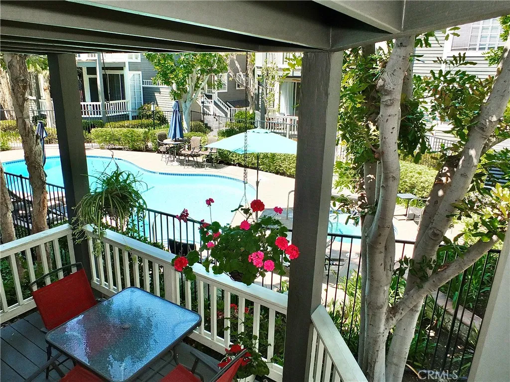 Newport Landing! Experience comfort and convenience in this charming Cape Cod-style community with lush, manicured landscaping throughout. This beautifully designed 2-bedroom, 2-bathroom home offers a well-thought-out floorplan perfect for privacy and easy living. Each spacious bedroom features its own bathroom, ideal for guests or roommates. Upon entry, you're greeted with an open-concept layout that provides clear sightlines from the dining room, kitchen and living room leading to a private deck/patio with serene views. The updated kitchen includes quartz countertops and a garden window that brings in natural light. The primary suite boasts two generous closets and a cozy alcove perfect for a reading nook or quiet retreat overlooking the pool. Enjoy direct views of one of the two sparkling community pools from your bedroom or private deck, creating a resort-like atmosphere. Additional highlights include an in-unit laundry closet conveniently located between the bedrooms and two separate garages for parking or extra storage. Newport Landings prime location puts you just minutes from beautiful beaches, the Orange County Fairgrounds, Vanguard University, Orange Coast College, local dining, shopping, and easy access to major OC freeways.