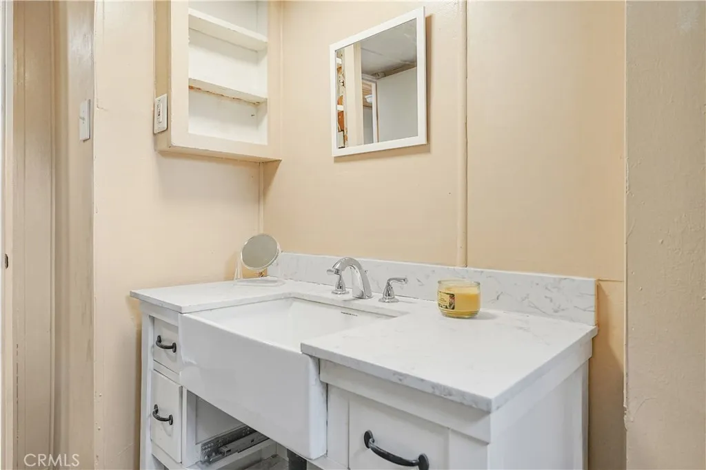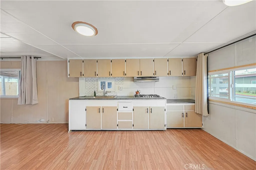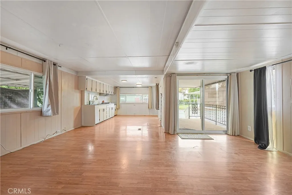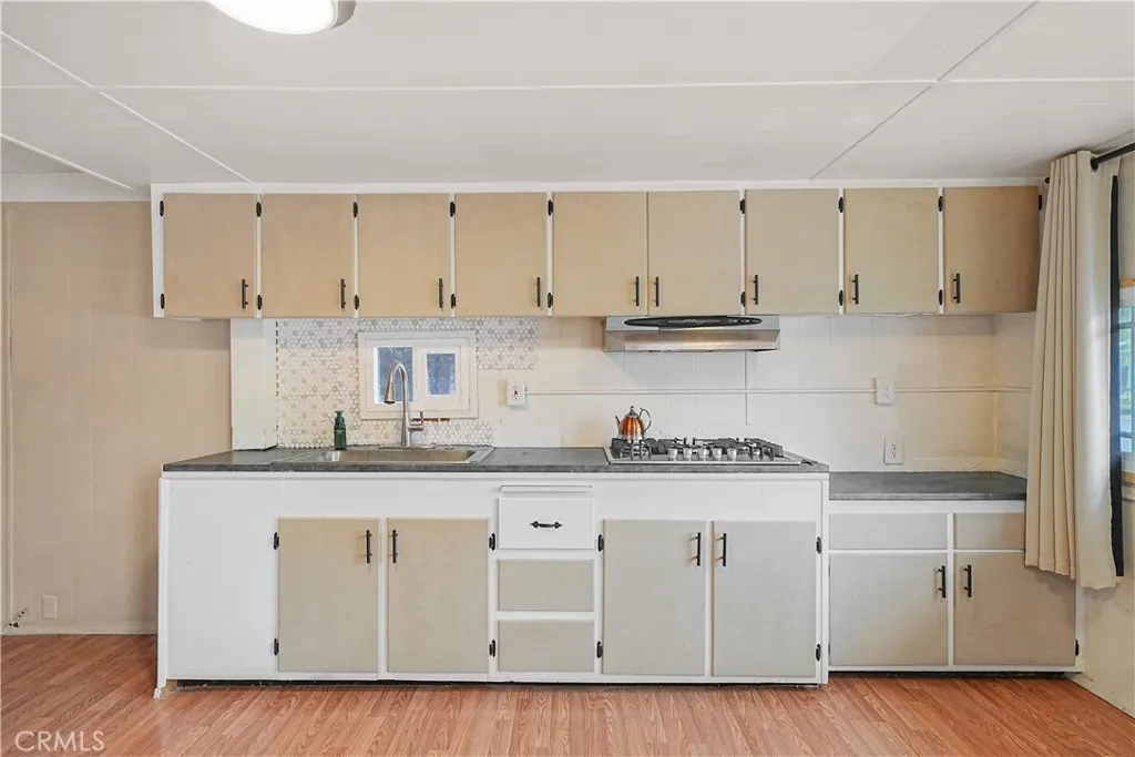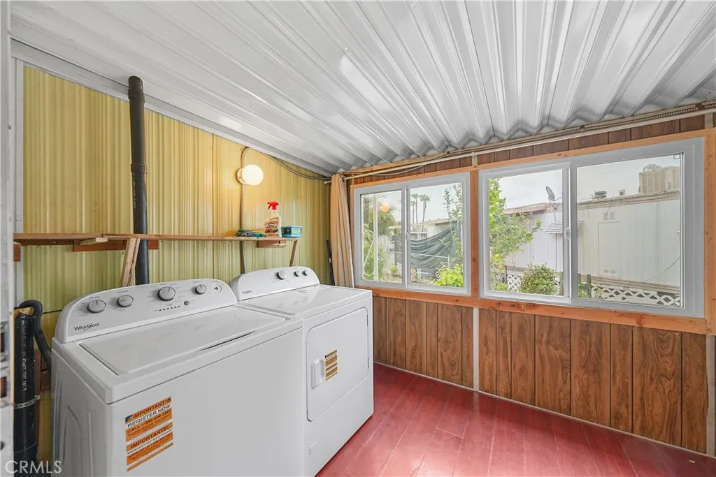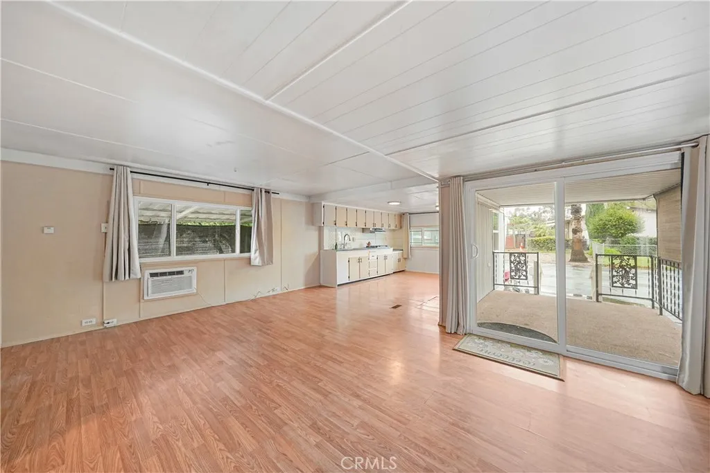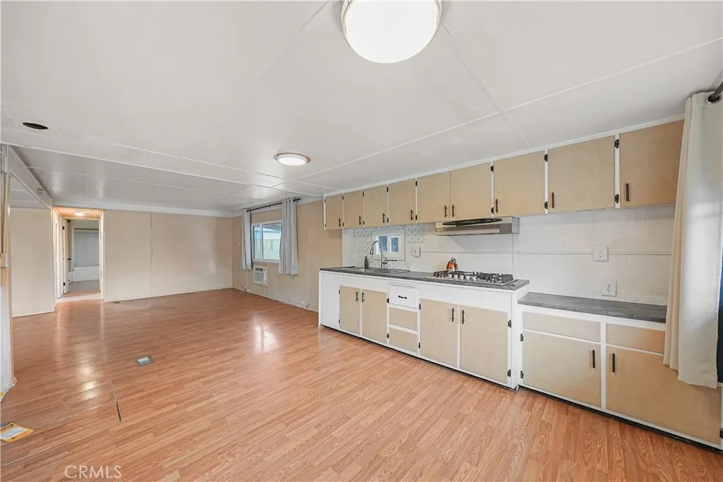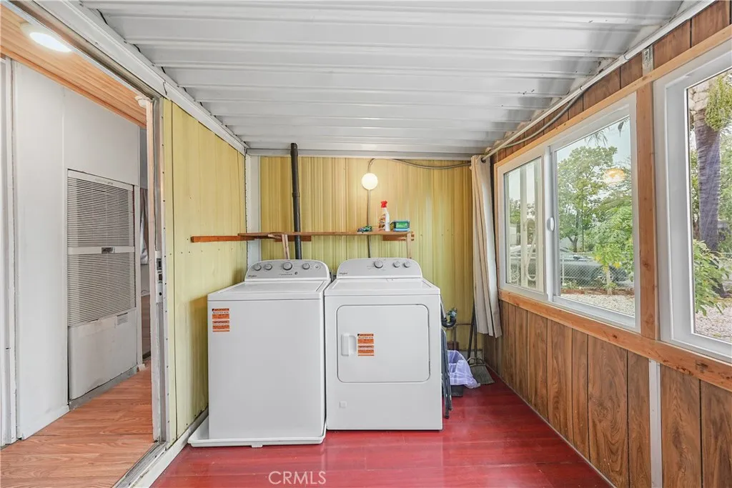 Welcome to this cozy 1-bedroom, 1-bath mobile home located in the heart of Fontana. This well-cared-for home offers a comfortable layout with thoughtful updates already in place, while leaving room for future personalization. An open living and dining area creates a welcoming space that flows into a charming kitchen, featuring a cooktop and newly installed sink and faucet, with room to add an oven and refrigerator to suit your needs. The bathroom has been refreshed with a new vanity, toilet, and shower head, and includes a convenient shower/tub combination. The bedroom offers generous storage with an entire wall of built-in closets and drawers. A separate laundry room includes a newer washer and dryerboth included in the saleand provides direct access to the backyard. Outside, enjoy a small front porch, a low-maintenance side yard accented with white rock landscaping and mature fruit trees, plus a storage shed for added convenience. A two-car carport completes the home. Situated in a community that offers a pool and a clubhouse with tables and a kitchen, this home is a wonderful opportunity for buyers looking for affordability, functionality, and the chance to make it their own.