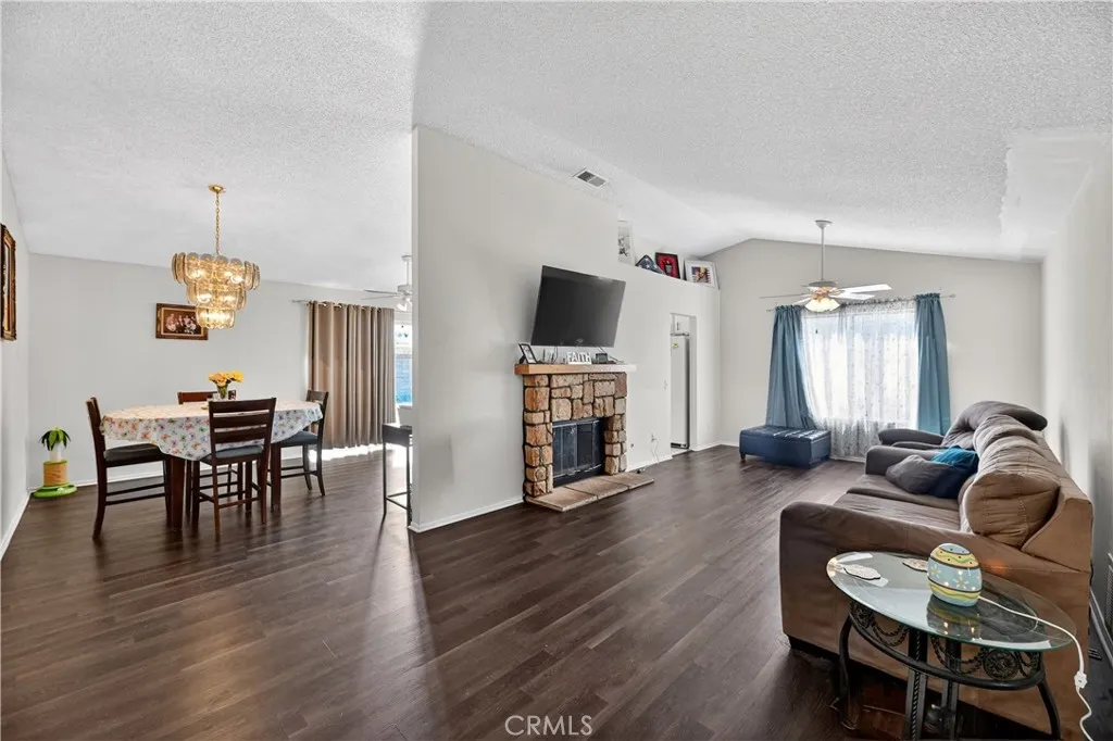 Beautiful 3-bedroom, 2-bath home located in a great area of Hemet This home has a two-car garage with additional driveway space, offering plenty of parking. Inside, youll find laminate wood flooring throughout and an open floor plan that brings in an abundance of natural light. The kitchen features bright white cabinetry, a breakfast bar for additional seating, and a clean, refreshed feel. The bathrooms offer shower/tub combinations, and all bedrooms are generously sized. Additional highlights include a cozy fireplace, gas stove, and washer/dryer gas hookups conveniently located in the garage. The backyard is ideal for entertaining, complete with a barbecue area, patio, and retractable awning. Theres also a large detached structure in the backyard perfect for a workshop, bonus room, man cave, or even future ADU potential. A solid home with great features and room to make it your own.