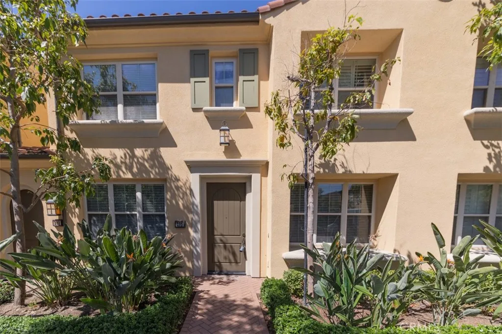 HIGHLY DESIRABLE HOME in the SANTA MARIA neighborhood of STONEGATE. This 2-bedroom home with an upstairs loft/office and 2.5 baths within approximately 1,538 square feet of comfortable space. The OPEN FLOOR PLAN feels bright and welcoming, with the kitchen acting as the central gathering space. It features a large center island, granite countertops and backsplash, stainless-steel appliances, including a refrigerator. Laminate wood flooring on the main level. The layout flows effortlessly into the dining and living areas. An interior atrium adds character and creates a flexible extension of the living space, perfect for relaxing or entertaining. ADDITIONAL HIGHLIGHTS include NEW LAMINATE FLOORING in the staircase, upstairs hallway, and bedrooms. LED recessed lighting, custom closet organizers, sliding mirrored closet doors, and window treatments. Near the direct-access garage entry, a charming office nook provides a practical work or study area. The attached two-car garage offers direct access and includes a 220V outlet suitable for EV charging. The home comes with a stackable washer and dryer. Ideally located near Stonegates resort-style amenities, including the Jr. Olympic pool and spa, parks, BBQ areas, basketball, and tennis courts. Conveniently close to Stonegate Elementary, Hummingbird Park, Woodbury Town Center, and the Jeffrey Open Space Trail.