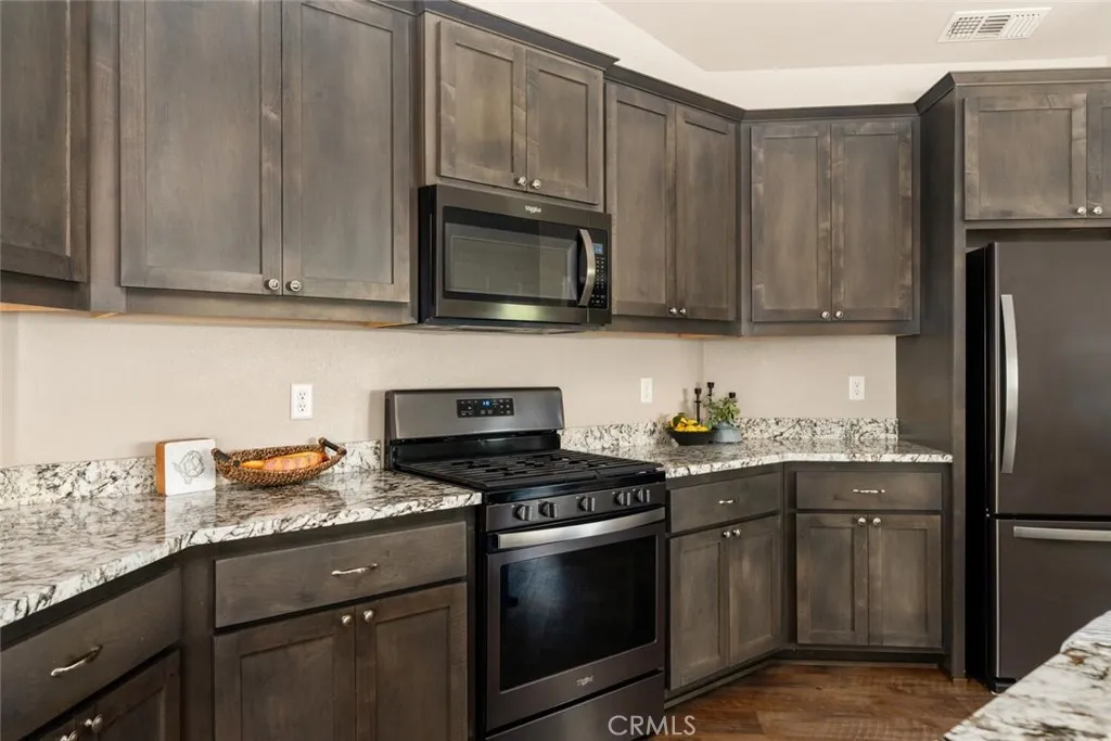 Constructed in 2019 with owned solar, and showcasing exceptional attention to detail, this home rests on one of the most spacious lots within this serene neighborhood. From the moment you step inside, youre welcomed by a bright, modern interior featuring luxury vinyl plank flooring, 9-foot vaulted ceilings, soft neutral tones, and a highly desirable open-concept layout that creates an airy, inviting atmosphere. The thoughtfully designed kitchen is perfect for everyday living and entertaining alike, showcasing granite countertops, rich wood cabinetry, sleek modern appliances, a gas range, and a spacious center island with breakfast bar seating. Retreat to the generously sized primary suite, complete with elegant tray ceilings, private backyard access, dual closets, and a spa-inspired bathroom offering double sinks and an oversized walk-in shower. Additional highlights include recessed lighting, ceiling fans throughout, a separate indoor laundry room, owned solar, and a spacious two-car garage. Step outside to a newly landscaped backyard designed for both relaxation and fun. Enjoy summer evenings under the covered patio with ceiling fan and recessed lighting, play on the lush green lawn, or take advantage of the extra space to create your own garden oasis. With its extensive list of amenities, prime location, and fresh, contemporary feel, this home truly offers the ideal setting to unwind and enjoy life.