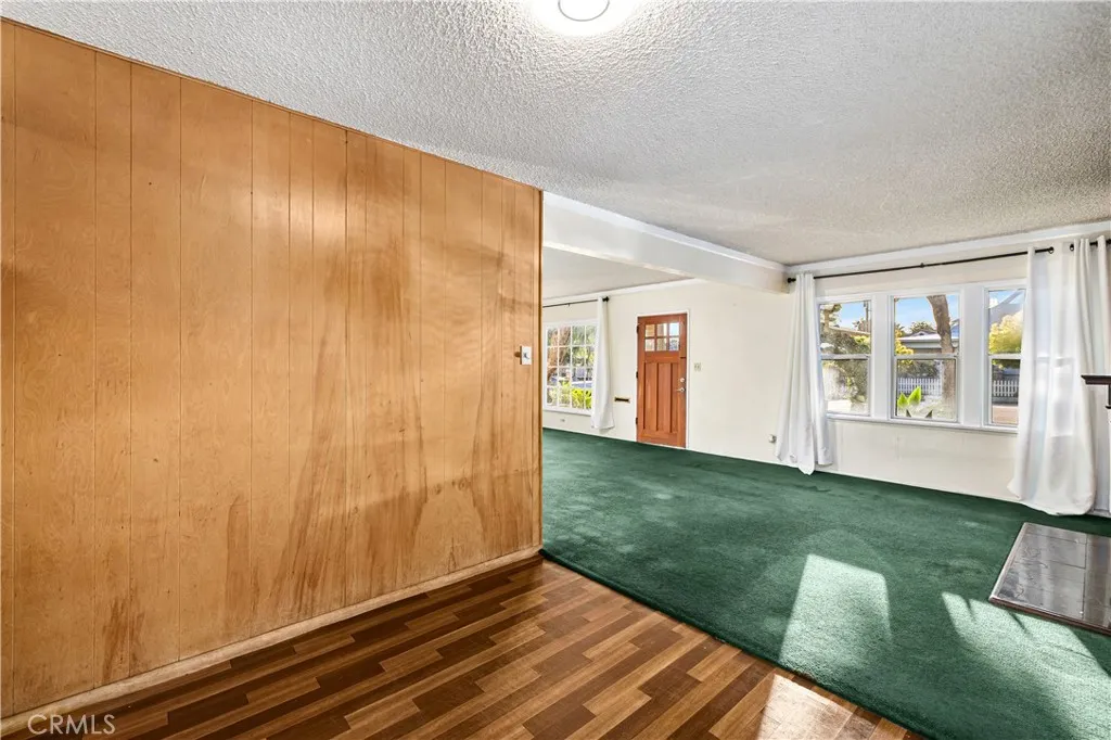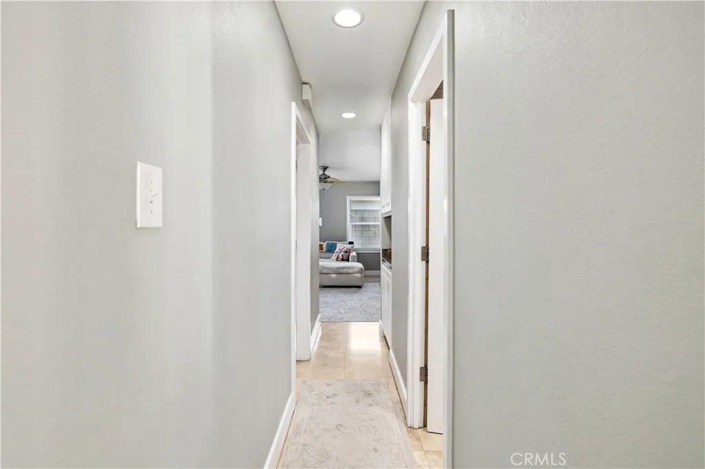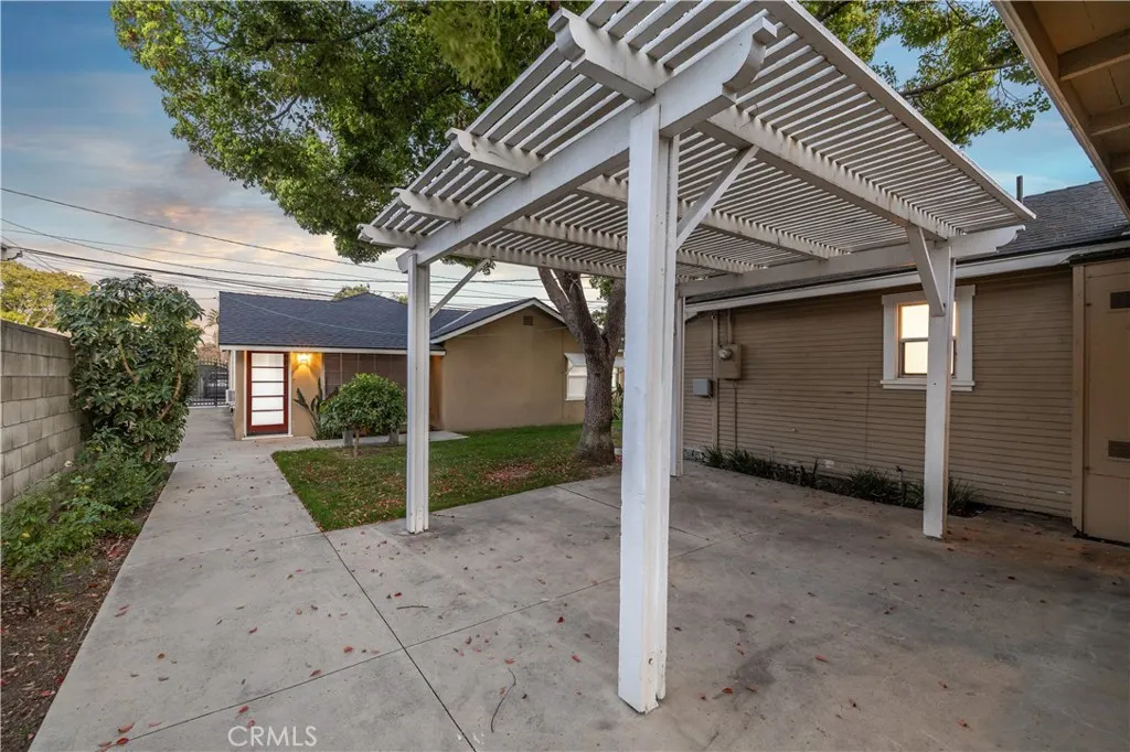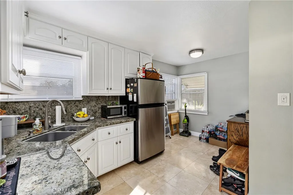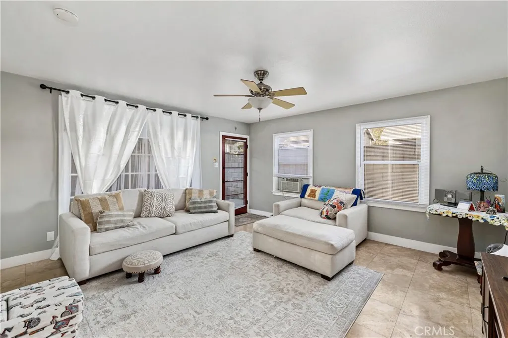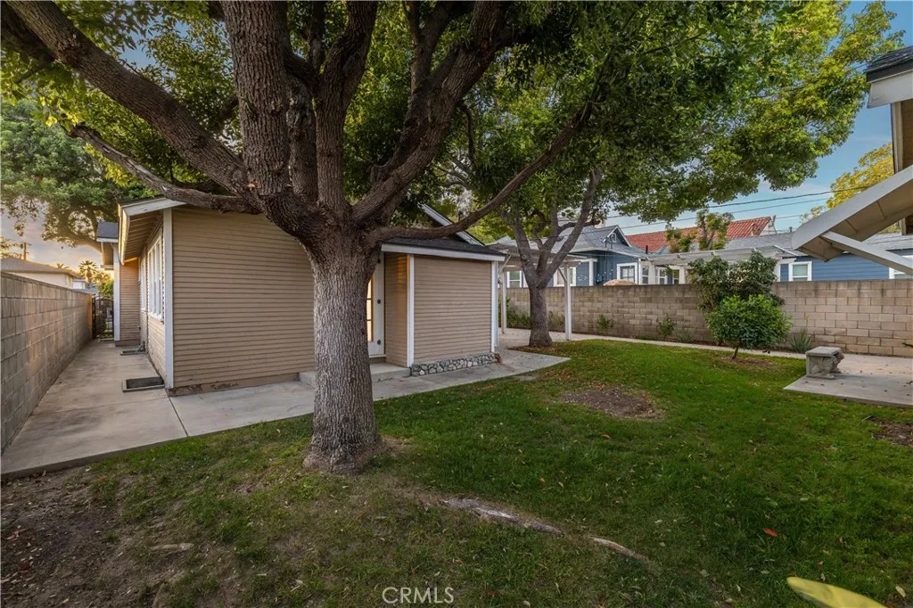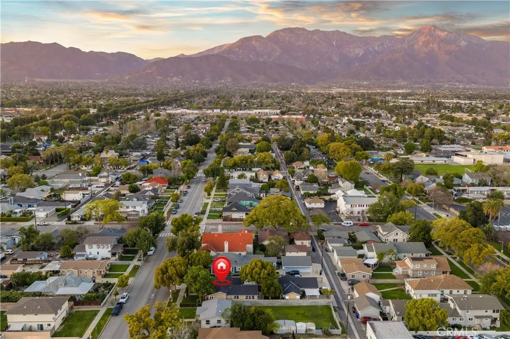 Located within walking distance to historic Downtown Upland and currently benefiting from the Mills Act, this two homes on one lot property at 548 N. 2nd Ave. and 548 1/2 N. 2nd Ave. features a front home with 3 bd, 2 ba, approx 1,488 sq ft plus a separate rear home/ADU with 1 bd, 1 ba, approx 683 sq ft, offering flexibility for rental income, guest house, or multi generational living. Each residence includes its own private garage, separate electric meter and gas, and individual laundry. The front Craftsman style home features a covered porch with stone accented columns, horizontal siding, and multi pane windows. The front yard includes mature shade trees, landscaped beds, lawn area, and a concrete walkway with a decorative garden arch framing the entry path. A long driveway along the side provides access to the rear of the property. The spacious living/family room offers large front facing windows, an original fireplace with wood mantel, and a wood paneled accent wall, plus a connected room ideal for a dining room/office. The layout flows into the kitchen and eating area creating a central living space. The kitchen features wood cabinetry, tile counters/backsplash, and a peninsula with a built in gas cooktop and vent hood. Laminate plank flooring in a parquet pattern extends through the kitchen and dining area. The dining space includes sliding glass doors to the side patio. Stainless steel refrigerator and freestanding gas range are included, with a nearby laundry room and storage. The hallway leads to the primary bedroom with hardwood flooring, corner windows, and an en