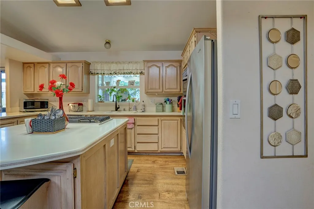 This unique home does not have steps up to the front door or patio slider. The front/side of this home is on ground level for easier access or handicapped access. This home is on an oversized lot with an amazing yard with a built-in fountain, built-in natural gas BBQ, grass, and mature trees for added shade and privacy. This 1995 1982 sq ft Silvercrest/Westwood has 3 bedrooms, 2.5 baths, (sq footage includes the enclosed garage) --extra-large attached garage with enough parking for 3 cars plus a large storage room. The spacious open floor plan is light and bright with several skylights and a caned skylight in the 2nd bedroom. All 3 bedrooms have walk-in closets. The 2 secondary bedrooms have a Jack and Jill bathroom with a stall shower with a seat bench. The kitchen is modern with a large island with bar seating, a built-in gas cooktop, and is open to the living room and dining room. The living room has a fireplace with gas logs. One of the bedrooms has a double door entry and a custom-built-in desk/work station (not attached, can be removed), and a very large walk-in closet. The master bedroom is very large and has a walk-in closet off the large master bathroom. The master bath has a Roman-style tub and a separate stall shower. The dining room is very large and has 2 skylights with retractable blinds. The laundry room has a 1/2 bath off of it and direct garage access. There are 2 water heaters (one is newer), so you will have plenty of hot water. This home is one of a kind and will sell quickly. Some of the recent upgrades include: new plumbing, new water heater, newer qu