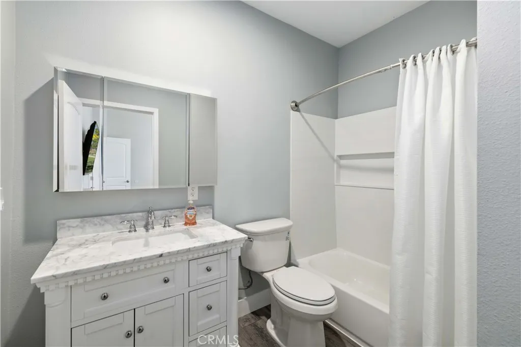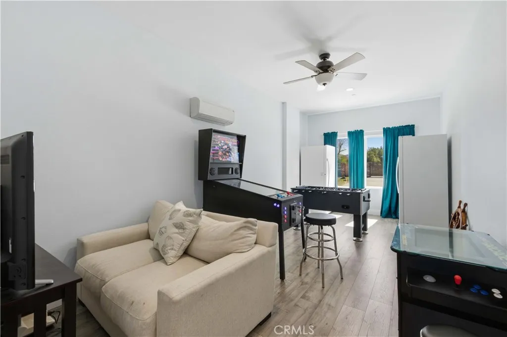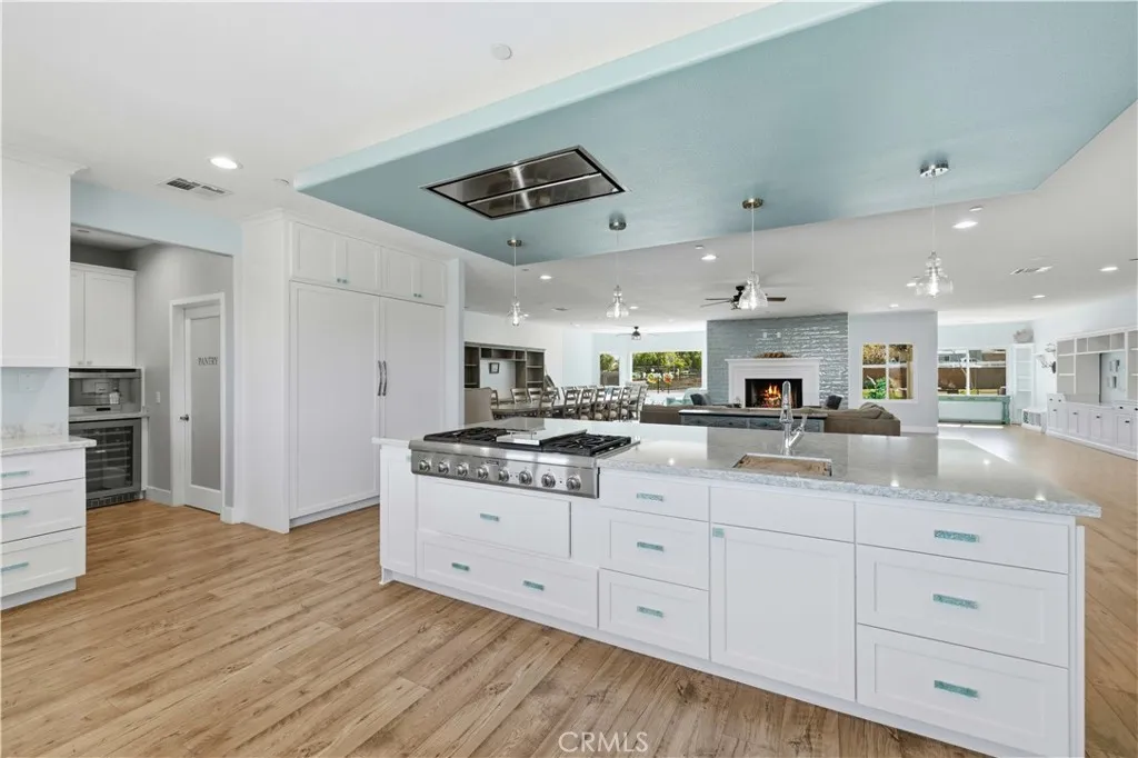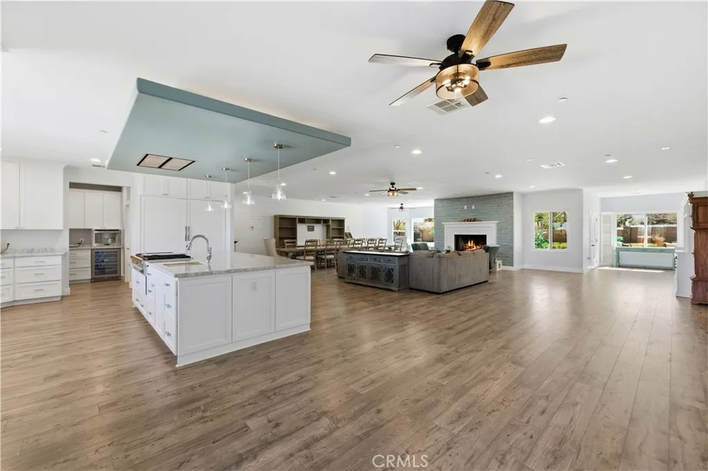 Fully remodeled in 2022, this exceptional nearly 5,000 sq. ft. luxury estate offers 4 bedrooms and 6 bathrooms, with each bedroom featuring its own private en-suite bathroom and custom walk-in closet. Two bathrooms include remote-controlled Toto smart toilets with built-in bidets. The spacious primary suite is a true retreat with a massive custom closet with center island and a spa-style bathroom with jacuzzi jetted tub. The chef's kitchen is designed for entertaining with custom soft-close cabinetry, oversized built-in Sub-Zero side-by-side refrigerator/freezer, Thermador 8-burner cooktop, warming oven, dual ovens, prep sink, and a large island with decorative color-changing lighting. The butler's pantry includes a wine refrigerator, built-in ice machine, and Thermador deluxe coffee maker. The grand great room features a fireplace and custom dining table with seating for 20 guests. Upgrades include luxury vinyl plank flooring, dual-pane energy-efficient windows, tankless water heater with instant hot water, whole-house fan, water purification system, dual HVAC systems, mini splits, ceiling fans, and 57 solar panels for energy efficiency. Enjoy a game room, private movie theater, sparkling pool, and an oversized workshop with bathrooms and laundry--ideal for an ADU, home business, or rental potential. Fully fenced with block walls and space for horses, animals, RV hookups, and toys. Barn, cargo container, and playground equipment included. Schedule your private tour today to experience this incredible property.
