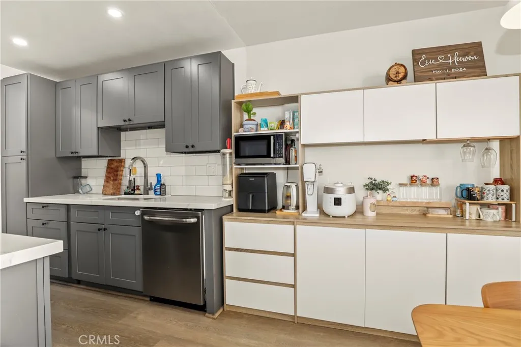 Nestled within a secure gated community, this beautifully updated three-story townhouse offers a bright and welcoming atmosphere perfect for modern living. The main floor features an airy, open layout with high ceilings and a classic fireplace that creates a warm centerpiece for the spacious living and dining areas. Youll love the updated kitchen, which shines with new quartz countertops and stylish cabinetry, and provides direct access to a private balcony for easy outdoor relaxation. Every room has been enhanced with durable new vinyl flooring, fresh paint, and integrated recessed lighting, while the upstairs bedrooms are impressively sized with plenty of natural light and storage. The sellers installed a new energy efficient HVAC heat pump combining savings and comfort. Both bathrooms have been thoughtfully updated, including a full renovation of the shared bath with a clean, modern tile surround. Complete with a private (direct entry) two-car garage and with extra storage, this townhome lives like a single family home. Situated in a prime, central location that is close to shopping and dining and freeway friendly making commuting a breeze. This move-in-ready home offers the perfect balance of comfort and convenience.