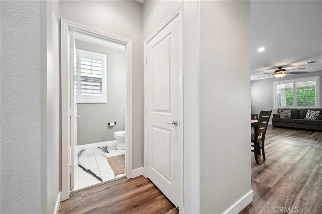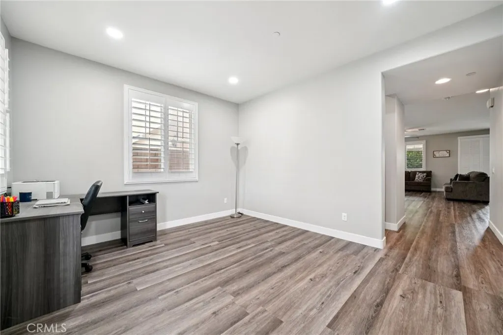 Welcome to your dream home! This beautifully maintained property is situated in a sought-after Eastvale community with low HOA fees. Nestled in a quiet cul-de-sac, this home boasts 4 spacious bedrooms and 3.5 bathrooms, perfect for comfortably. As you step inside, you'll be greeted by an open floor plan that seamlessly connects the kitchen, family room and dining area-ideal for entertaining and family gatherings. The ample sized kitchen features a cozy nook, perfect for family meals. The Master Bedroom retreat is a true sanctuary, complete with a luxurious bathroom, a walk-in closet, and private balcony to enjoy fresh air. Enjoy the upgraded wood flooring, upgraded baseboards and planation shutters throughout enhancing both style and comfort. Upstairs you'll find a mini suite bedroom with its own bathroom, along with a convenient laundry room and three well sized bedrooms. Step outside to your beautifully landscaped backyard, featuring a fire pit, patio cover and ceiling fan, stamped concrete-an inviting space for outdoor entertaining and relaxing. Gas line connections in backyard to easily install outside barbeque island. The garage is equipped with proxy seal flooring and ceiling shelfs for plenty of storage, along with a split ac unit for a perfect mancave, workshop, or gym, complemented by a tankless water heater for efficiency. Conveniently located near top rated schools, shopping, and an internation airport, making it ideal for both leisure and commuter needs. Don't miss this opportunity to make this exceptional property yours before summer! See you in escrow!