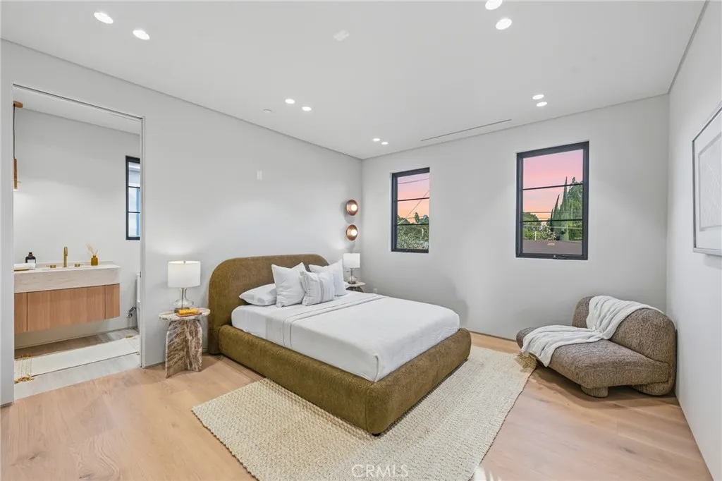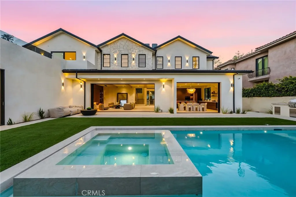 Welcome to a stunning newly constructed estate in the highly sought-after Hesby Oaks neighborhood of Encino, where modern luxury and thoughtful design come together to create the ultimate California lifestyle. This exceptional residence offers 6 spacious bedrooms plus a private movie theater, delivering an ideal layout for both everyday comfort and elevated entertaining. Upon entry, soaring ceilings, wide-plank hardwood floors, and expansive walls of glass greet you, flooding the home with natural light while creating seamless indoor-outdoor flow. The open-concept living spaces lead into a designer chefs kitchen featuring top-of-the-line appliances, custom cabinetry, an oversized center island, and a hidden walk-in pantry that adds both functionality and a sleek, refined aesthetic. Pocket sliding doors open effortlessly from the main living areas, creating a seamless transition to the backyard and enhancing the homes indoor-outdoor lifestyle. The thoughtfully designed floor plan includes generously sized bedrooms, and a luxurious primary suite retreat complete with a spa-inspired bathroom and an expansive walk-in closet. Step outside to an entertainers dream backyard, featuring a sparkling pool with an elevated spa, spacious lounging areas, and a fully equipped outdoor kitchen perfect for hosting and dining al fresco. Situated on a gated property along a quiet, tree-lined street in the coveted Hesby Oaks neighborhood, the home offers both privacy and tranquility while remaining just moments from Ventura Boulevards premier shopping, dining, and entertainment. A rare opportun