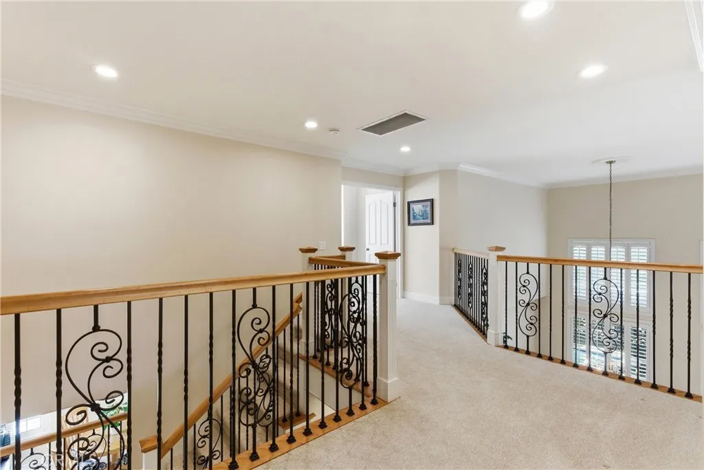 Nestled at the end of a quiet cul-de-sac in the prestigious gated community of Canyon Crest, this meticulously maintained residence showcases true pride of ownership and a rare level of privacy. Spanning 3,400 square feet on an oversized 8,050 square foot lot, a size seldom found within the neighborhood community, the home offers an expansive environment designed for both sophisticated living and grand-scale entertaining. The backyard serves as a private oasis, featuring a saltwater pool with solar heating and a spa, all framed by beautifully curated landscaping that extends to the front of the property. Inside, the open floor plan is bathed in an abundance of natural light and accented by plantation shutters throughout. The gourmet kitchen is a chefs delight, featuring stainless steel appliances, sleek soft-close shaker-style cabinetry, and a beautiful blend of granite and quartz countertops. The main level is thoughtfully designed for accessibility and versatility, offering a downstairs bedroom and full bathroom with no steps, perfect for guests or multi-generational living. The second level is equally impressive, featuring brand-new carpet and a large bonus room that provides flexible space for a home office, bonus room, or play area. The spacious primary suite is a dedicated retreat, boasting two walk-in closets and a spa-inspired bathroom complete with a soaking tub, a large walk-in shower, and a dual vanity featuring slow-close cabinetry and quartz finishes. The homes exceptional maintenance is further evidenced by significant high-value upgrades, including a full rep