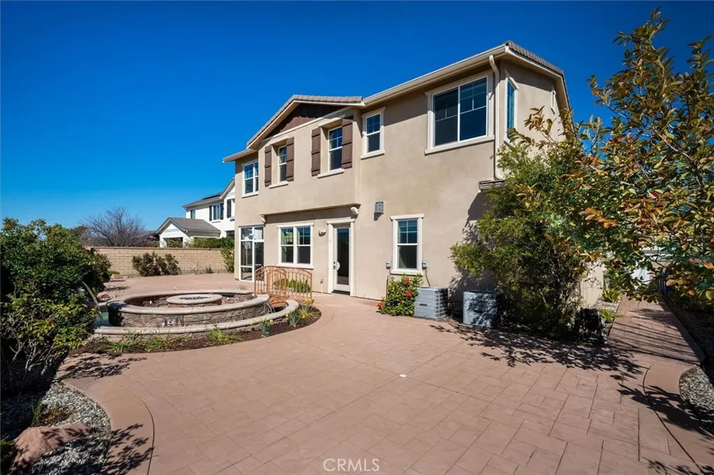 Welcome to this beautifully designed 6-bedroom, 4.5-bathroom home offering over 4,200 square feet of thoughtfully designed living space in the exclusive gated River Village community. With paid solar, flexible living areas, and inviting indoor-outdoor spaces, this home blends comfort, functionality, and entertainment. Inside, the open layout creates an easy flow between the living, dining, and kitchen areasperfect for everyday living and hosting gatherings. The kitchen features double ovens, huge walk-in pantry, large island with seating for six and plenty of cabinet space. Family room features a fireplace and beautiful views of the surrounding area. Two downstairs bedrooms provide ideal flexibility for guests, multi-generational living, or a private home office. Upstairs, a spacious loft has been transformed into the ultimate entertainment space, featuring a projection screen, built-in surround sound system, blackout blinds, making it perfect for movie nights, game days, or relaxing evenings at home. The primary suite features gorgeous views, a retreat, en-suite bathroom with two walk in closet, double sinks and a soaking tub. There are 3 more bedrooms upstairs, one with an attached bathroom, making it mini primary suite. Laundry room is conveniently located upstairs with sink and large walk-in linen closet. An enclosed sunroom offers additional year-round living space and a wonderful place to relax or entertain while enjoying views of the backyard. Step outside to your private backyard retreat featuring incredible views of Santa Clarita, a water feature with fountains and