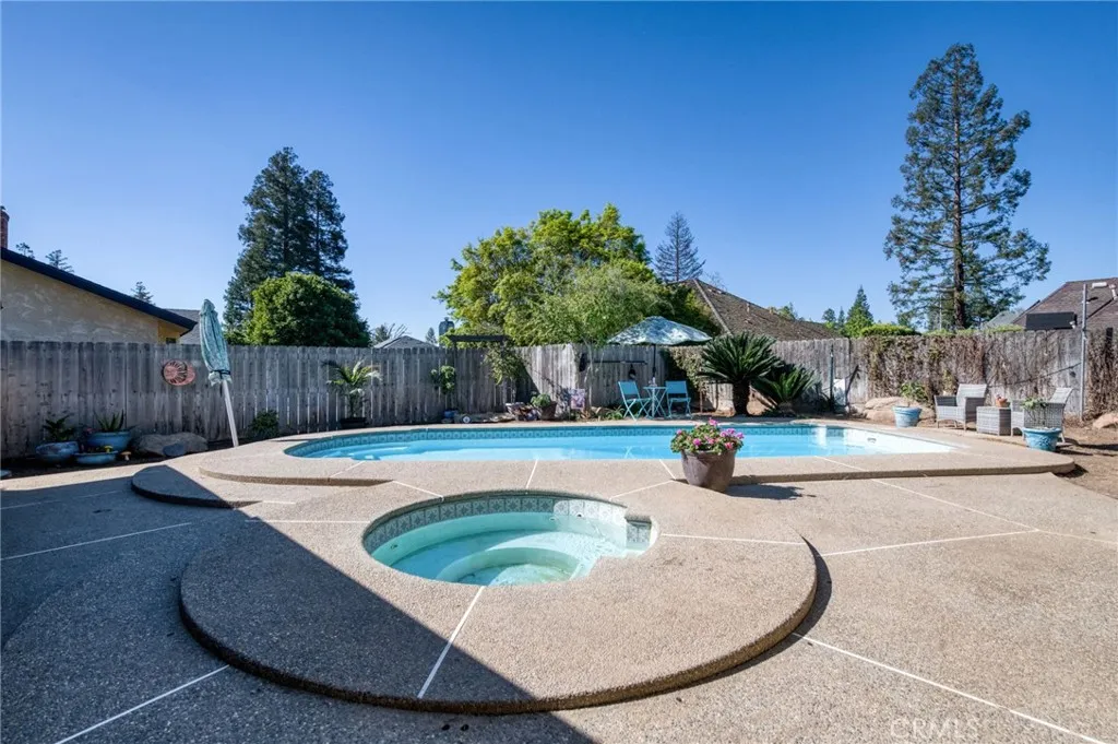 Welcome to this beautiful 3-bedroom, 2-bath home tucked into a desirable tree-lined neighborhood in Northwest Fresno. From the moment you step inside, you'll notice the fresh, inviting feel created by new LVT plank flooring, a freshly painted interior, large updated windows that fill the home with natural light, large open living space with high ceilings, open space for home office or dinning room & 3 spacious bedrooms. Plus a bonus room that you can be used as a hang out space, home office or an additional bedroom. The updated kitchen offers a great space for everyday living and gathering with family and friends, while the comfortable layout makes the home feel both open and welcoming. Step outside and you'll find your own private retreat with covered patio, a sparkling swimming pool and spa, perfect for relaxing on warm Fresno days or entertaining guests. The home also includes owned solar, providing energy efficiency and helping keep utility costs down. Location is another standout feature. You'll love being just minutes from Woodward Park, shopping and dining at River Park, Trader Joe's, and easy access to Highway 41 for commuting. Plus, the home is located within the award-winning Clovis Unified School District. This home truly offers the perfect blend of comfort, updates, and a fantastic location. Make your appointment for a private showing.