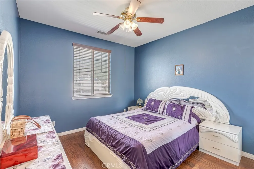 Welcome to this beautifully maintained home in the desirable city of Fontana, featuring owned solar panels that will be paid in full at closing, along with a backup battery system for added energy efficiency and peace of mind! Proudly offered by its original owners, this property was purchased as a new build and has been meticulously cared for ever since. Boasting impressive curb appeal, the home features lush landscaping with automatic sprinklers in both the front and backyard, creating a vibrant and low-maintenance outdoor space. A spacious driveway and rare 3-car garage provide ample parking and storage options. Public records reflect the home as a 4-bedroom, 2.5-bathroom property; however, it offers a functional layout with 5 bedrooms and 3 full bathroomsall original to the builder with no additions made. The main floor includes a convenient bedroom and full bathroom, perfect for guests or multi-generational living. Upstairs, youll find four additional bedrooms, including a generous primary suite complete with its own private bathroom. The second level also features a dedicated laundry room for added convenience. Nestled in a quiet and serene neighborhood away from busy main roads, this home still offers close proximity to local parks, shopping centers, gyms, and provides easy access to the Interstate 15making commuting a breeze. Best of all, enjoy the freedom of no HOA. This is a rare opportunity to own a well-cared-for, original-owner home in a prime location. Dont miss out! Upstairs, youll find four additional bedrooms, including a generous primary suite complete wit