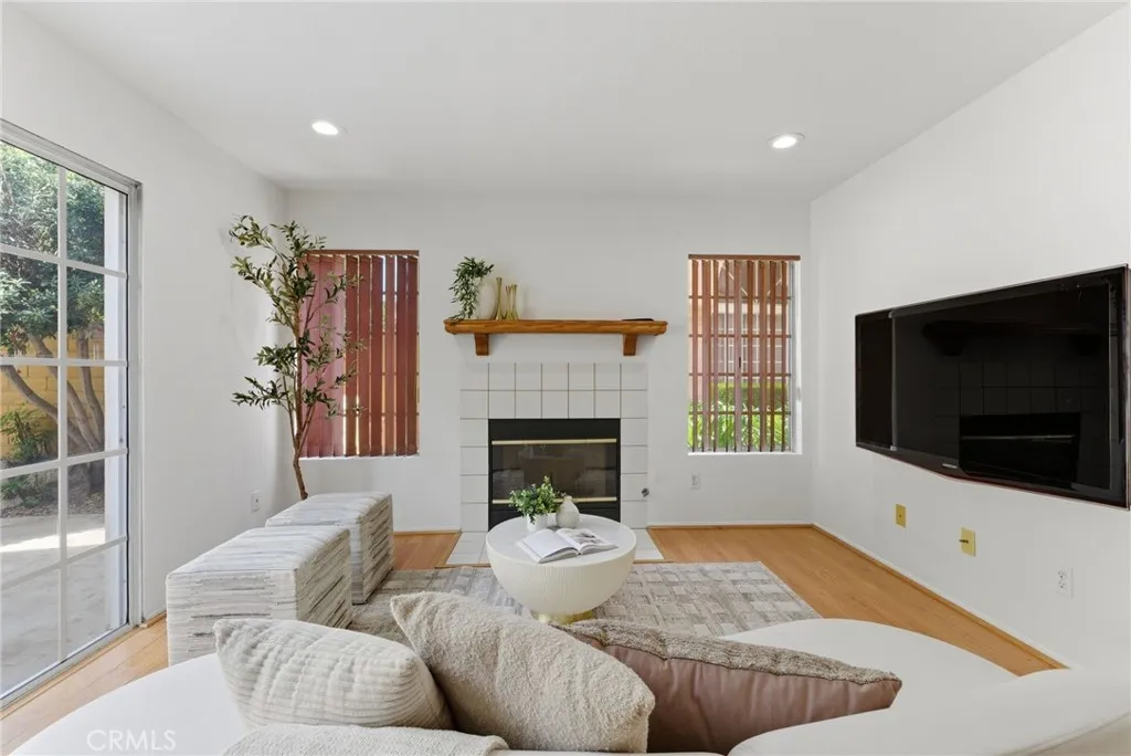 ABC School District + Cerritos + Gated Community = Opportunity. This freshly painted townhome offers a bright, open floor plan with soaring ceilings and abundant natural light throughout. The formal living and dining areas create a spacious setting for both everyday living and entertaining. The kitchen features quartz countertops, a new beverage fridge, ample cabinetry, breakfast nook, and a seating bar, opening seamlessly to the family room with fireplace and direct access to the private patioideal for indoor-outdoor living. Upstairs, the primary suite features high ceilings, generous space, and an en-suite bathroom. Bathrooms throughout the home have been recently upgraded, adding a fresh and modern touch. Two additional bedrooms offer flexibility for guests, home office, or gym. Interior features include laminate wood flooring, recessed lighting, and large windows throughout. Additional highlights include a 2-car attached garage with direct access, laundry hook-ups with additional storage, and access to community amenities including pool and spa. Conveniently located near the Cerritos Library, Cerritos Mall, variety of dining options, and close to the 605 and 91 FWY. This home presents a rare opportunity to own in a gated Cerritos community within the highly sought-after ABC Unified School District.