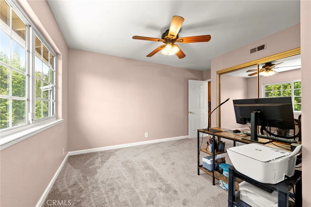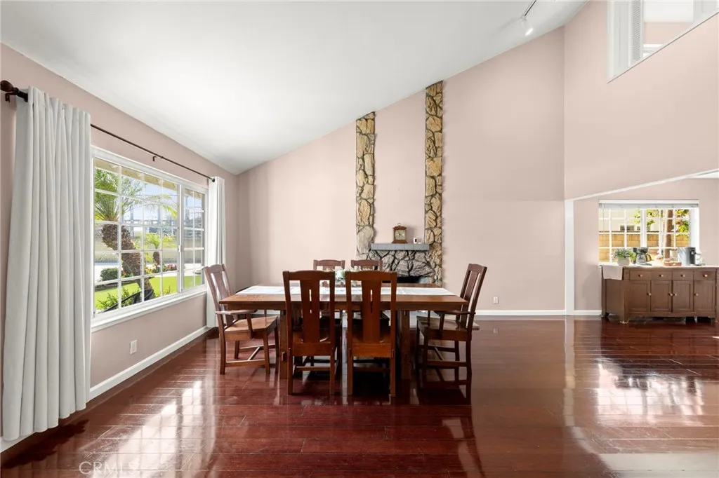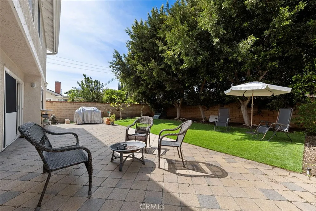 Located in a quiet, well established Cypress neighborhood, this 4 bedroom, 3 bathroom home offers a functional layout, flexible living spaces, and an ideal setup for modern living. Spanning two levels, the home features a desirable downstairs bedroom and bathroom, perfect for guests, extended family, or a dedicated home office. Upon entry, vaulted ceilings create an open, airy feel, while the main living and dining areas provide a comfortable space for both everyday living and entertaining. The kitchen has been updated with quartz countertops and offers plenty of storage, flowing naturally into the surrounding living spaces. A combination of tile flooring and bamboo flooring in the dining area adds warmth and durability throughout the main level. Upstairs, the primary suite offers a spacious layout with an ensuite bathroom, while two additional bedrooms are connected by a Jack-and-Jill bathroom, creating a practical and well-balanced floor plan. Additional features include dual-pane windows, central heating and air conditioning, and a whole house fan to enhance energy efficiency and year-round comfort. The backyard is designed for both entertaining and easy upkeep, featuring low-maintenance turf, paver hardscape, and a dedicated gardening area. Out front, the home continues to impress with paver hardscape, artificial turf, and a variety of mature fruit trees that add both charm and functionality. The location truly stands out, just a short 3-minute walk to Cypress High School, with convenient access to nearby parks, shopping, dining, and major freeways. This home offers a g