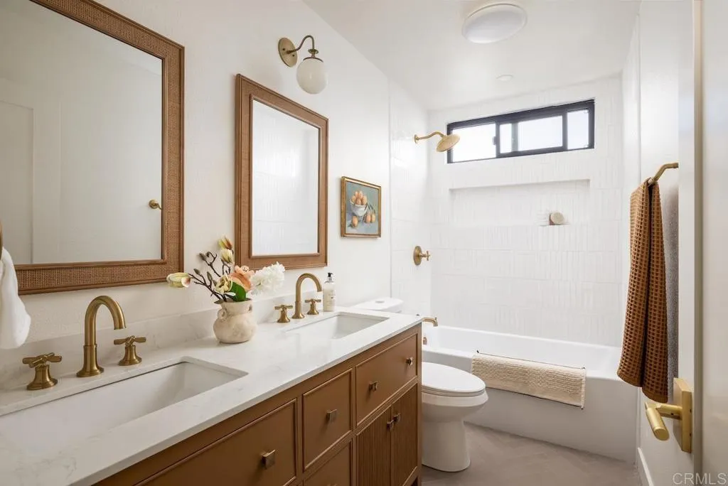 **Dwell West proudly presents** Nestled on a prime corner lot in Olde Carlsbad, this single-story coastal retreat was completely remodeled with warm organic materials and an elevated designer style. Seamless indoor/outdoor living is showcased with cantina doors to the backyard, plus wide plank LVP flooring, curated light fixtures, and wood accent walls throughout. The chef's kitchen sets the tone with custom oak shaker cabinetry, quartz countertops with a dramatic waterfall-edge island, and artisan stone backsplash that flows seamlessly into the dining room. The primary suite is a true spa retreat with a freestanding double vanity and a walk-in shower with floor to ceiling tile and multiple showerheads. The secondary bath mirrors the same refined level of finish with a tiled tub and shower combo. Experience the ultimate backyard escape with a freeform pool, pergola-covered patio, low-maintenance turf, garden beds, dog run, and room for RV parking. The fully insulated, detached 4th room with electricity offers flexible options for a home office, exercise space, or creative retreat. Additional highlights include black-frame double-pane windows, new HVAC, fresh interior and exterior paint, new doors and hardware throughout including a fiberglass front door, interior laundry room with sink, and a new garage door. Zoned for Kelly Elementary, Valley Middle, and Carlsbad or Sage Creek High, with no HOA or Mello Roos, this home is walking distance to the lagoon with easy access to I-5, the beach, and Carlsbads vibrant downtown dining scene. Buyer and buyer's agent to verify all in