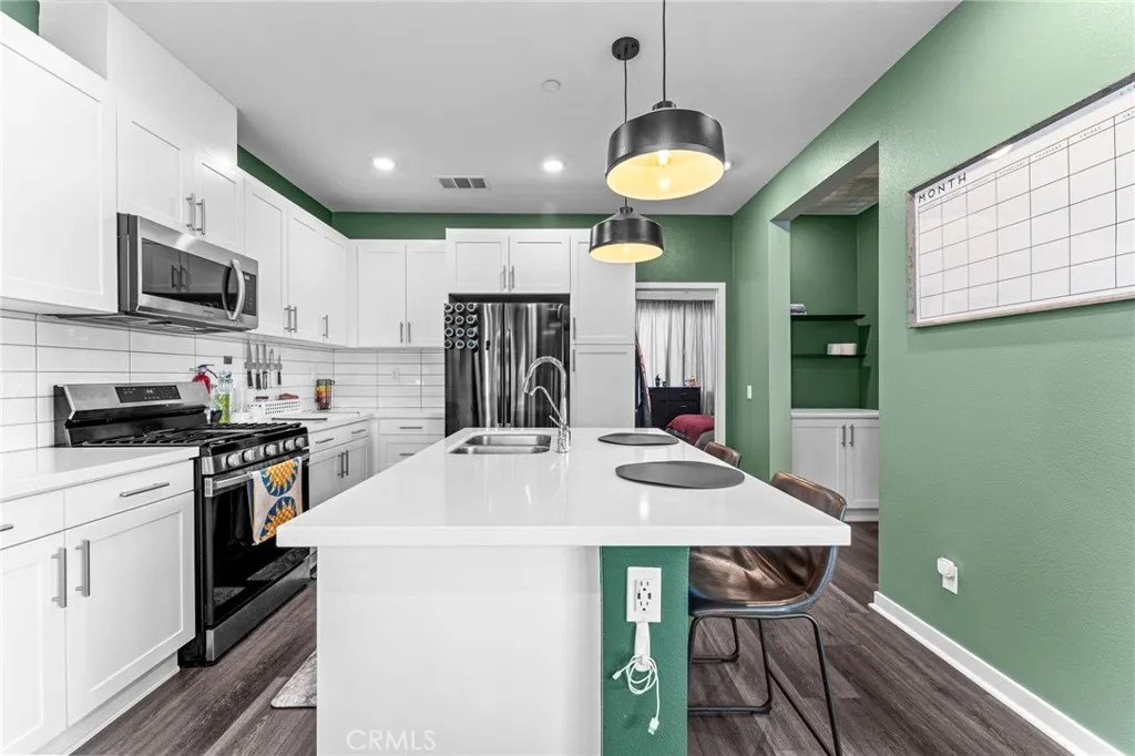 **FHA Approved Community** Welcome to modern living at its most effortless in Ontario Ranch, where smart design, energy efficiency, and lifestyle amenities come together in one beautifully crafted home. Built in 2021 by Landsea Homes, this stylish 2-bedroom, 2.5-bath condominium offers a flexible floor plan that adapts to the way you live today. The first-floor bedroom with its own private en-suite bath creates the perfect space for guests, a quiet home office, or multigenerational living that feels comfortable and independent. Upstairs, the heart of the home opens into a bright, contemporary great room where the kitchen, dining, and living areas flow together seamlessly. The modern kitchen features sleek finishes, generous cabinetry, and a layout designed for both everyday ease and effortless entertaining. Just beyond, the spacious primary suite becomes your private retreat, complete with a walk-in closet and a well-appointed bath designed for comfort and calm. Additional highlights include an attached 2-car garage, laundry room, central A/C, leased solar panels for energy efficiency and long-term savings, and modern finishes throughout that give the home a fresh, polished feel from top to bottom. Step outside and enjoy resort-style community amenities that feel like a weekend escape waiting just beyond your front door. Pool and spa, BBQ areas, outdoor showers, fire pit, picnic spaces, and a playground perfect for gathering with friends or relaxing under the evening sky. Ideally located near schools, shopping, dining, and major commuter routes, this home delivers the perfe