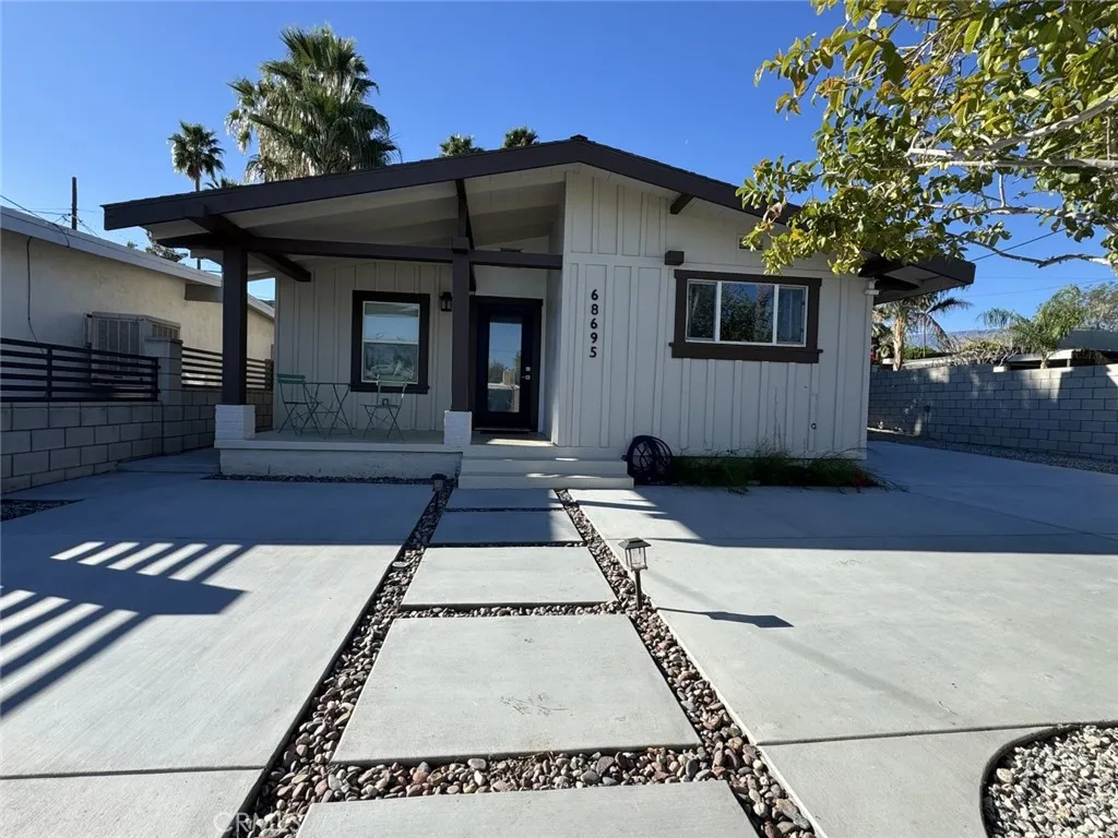 Impressive Remodeled Craftsman in the Coveted Cathedral City Cove, Showcasing Stunning Mountain Views and Thoughtful Upgrades Throughout. This bright 2+ bedroom, 2.5 bath residence beautifully blends timeless character with modern finishes. The open-concept kitchen is designed for both everyday living and entertaining, featuring soft-close white cabinetry, quartz countertops, stainless steel appliances, and a gas cooktop. Luxury vinyl plank flooring, newer dual-pane windows and doors, recessed LED lighting, and a sleek all-glass gas fireplace add style and comfort throughout the home. All three bathrooms have been tastefully remodeled, including two elegant full baths and a chic powder room. A versatile bonus room offers the perfect space for a home office, studio, or creative retreat. Additional highlights include interior laundry with an upgraded closet for a stackable washer and dryer, a high-efficiency HVAC system, and low-maintenance landscaping. The fully gated property features rare dual driveways with parking for up to five vehicles or potential RV accessoffering both privacy and flexibility. Ideally located on a desirable street in The Cove, this move-in-ready home delivers charm, comfort, and the very best of desert living.