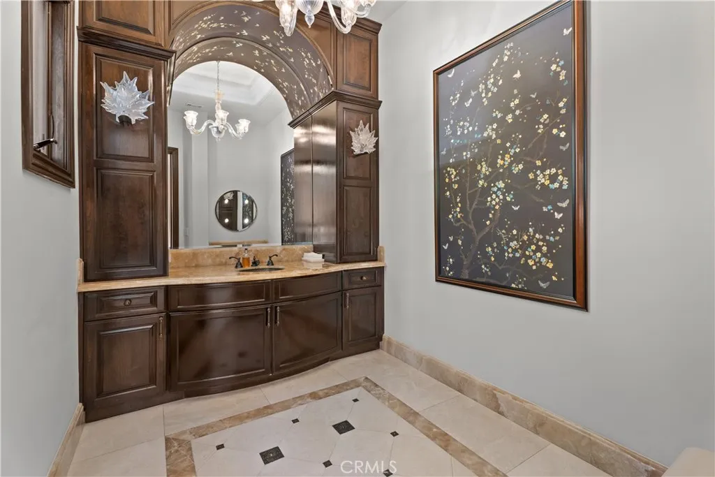 Perched above Chantilly Road, this gated furnished Bel Air estate offers exceptional privacy, introduced by a long, gated driveway offering exceptional privacy, leading to an expansive motor court. A dramatic two-story entry makes an immediate statement, centered around a 30-foot grand rotunda with a sweeping marble staircase and custom ironwork. Natural light pours through the space, illuminating curated materials throughout, including stone, marble, rich hardwood, and bespoke millwork. Spanning approximately 12,340 square feet, the residence offers six bedrooms and eight bathrooms, with five bedrooms on the second floor, most en-suite. The primary suite is a true retreat, featuring multiple walk-in closets, a spa-level bath with steam shower and soaking tub, and private balconies overlooking lush canyon greenery. Designed to live well and host effortlessly, the main level includes formal living and dining rooms, a family room, and a chefs kitchen equipped with dual sinks, two dishwashers, and Sub-Zero and Viking appliances. A custom bar adds another layer for entertaining. Additional features include a library, elevator, housekeepers quarters, full laundry room, and a flexible lower level ideal for a variety of uses. The grounds deliver on every level. Multiple terraces, a loggia, and an outdoor dining area flow seamlessly to an infinity-edge pool and spa, all surrounded by mature trees that create a rare sense of total seclusion. An oversized, finished garage accommodates up to eight vehicles and offers the flexibility to function as a multi-use space for recreation, wel