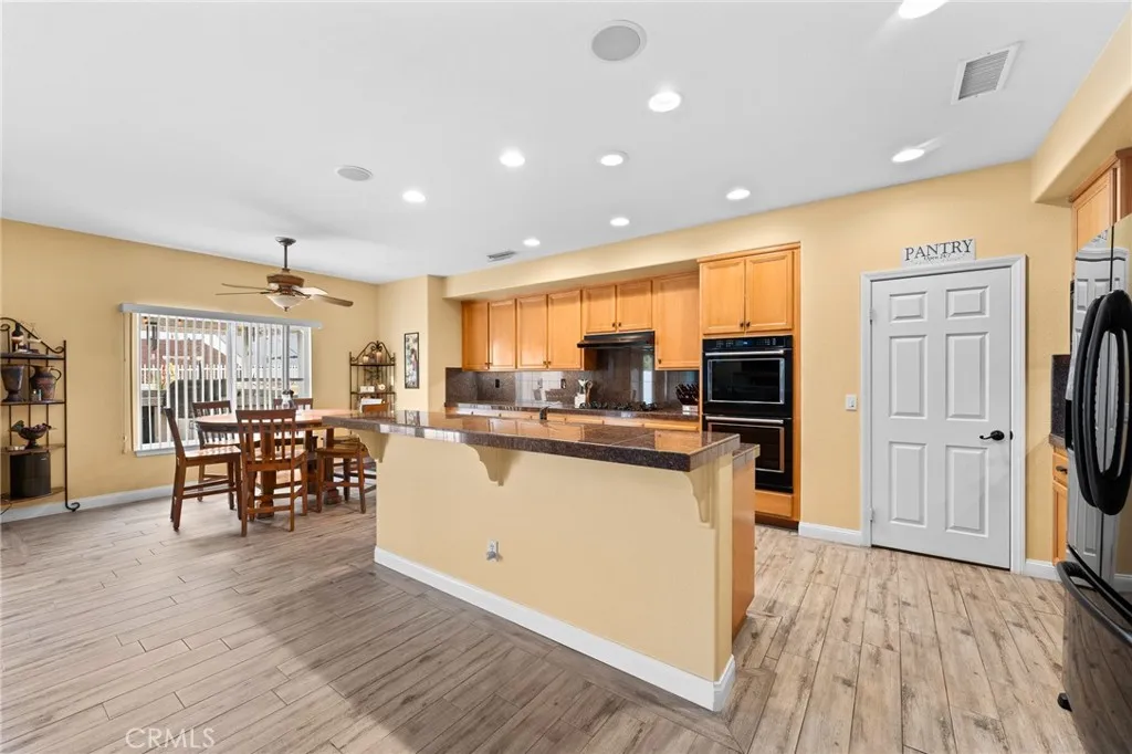 Experience upscale living in this beautifully maintained custom built single-story home! Located in one of Yucaipas most sought-after communities, just off Wildwood Canyon and minutes from Oak Glen. Offering a spacious and functional layout, the home features formal living and dining areas along with an open-concept family room with a wood burning fireplace, ideal for both everyday living and entertaining. Upgraded flooring runs throughout, including wood-like tile in the main areas and newly installed LVP flooring in the bathroom. The kitchen is thoughtfully designed with granite countertops, custom cabinetry, a large island, walk-in pantry, and double ovens. The primary suite offers a spacious retreat with dual sinks, soaking tub, walk-in closet, and ample storage. Additional bedrooms are well-sized, including a flexible office space with French doors and a convenient Jack-and-Jill setup. Step outside to a private, low-maintenance backyard with tiered hardscape, mountain views, covered patios, and a built-in BBQ areaperfect for entertaining. Additional highlights include PAID-OFF SOLAR, RV parking with dump station, a finished garage, and an insulated shed. Conveniently located near local wineries, and dining, this home offers a rare blend of privacy and seclusion while still being close to everyday amenities. It's ideal for those who appreciate nature, scenic mountain views, and a more peaceful lifestyle. Schedule a tour today to experience everything this home has to offer!