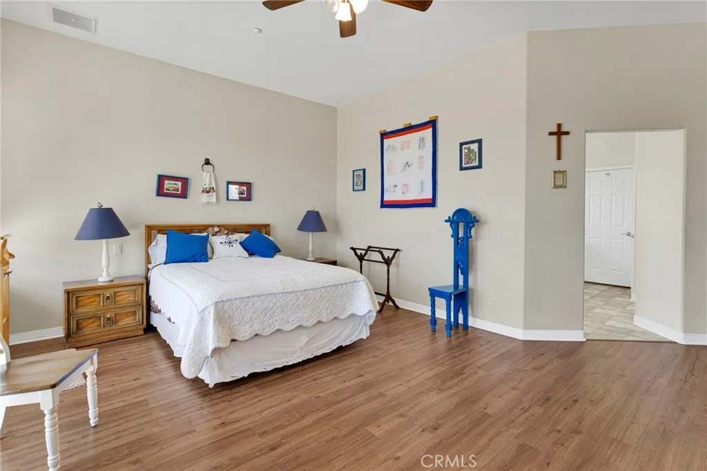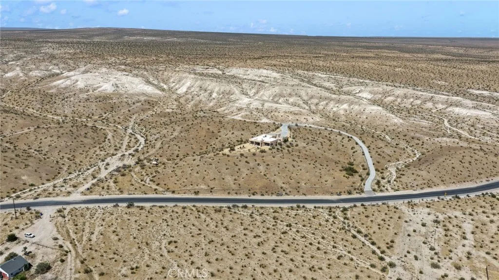 Stunning Santa Fe-style custom estate on 14 acres in Helendale with breathtaking 360 views! This 2,938 sq ft home offers 3 bedrooms, 2.5 baths, plus a detached 480 sq ft casita with full bathperfect for guests or multigenerational living. Inside, enjoy soaring 12 ceilings, formal living and dining rooms, and a massive farmhouse-style kitchen that serves as the heart of the home, featuring dual sinks, a large island, and open to the family room for entertaining. Designed to capture the incredible surroundings, the formal living room and family room both feature large sliders and picture windows showcasing the desert landscape and evening city lights. The spacious family room also includes a wood-burning insert with a striking custom petrified wood accent. The huge primary suite includes a walk-in closet, separate jetted tub, and walk-in shower, along with its own large slider offering the same stunning desert and evening city light views. Secondary bedrooms are generously sized. Additional highlights include a large indoor laundry room and water softener. Outdoor amenities include a private courtyard, fully fenced acreage, and electric gates, all set on a paved road. The property also features a 6-car tandem garage and a high-capacity well capable of supporting additional structures or a second home. A rare combination of space, privacy, and custom design! Just minutes from the Silver Lakes Community!