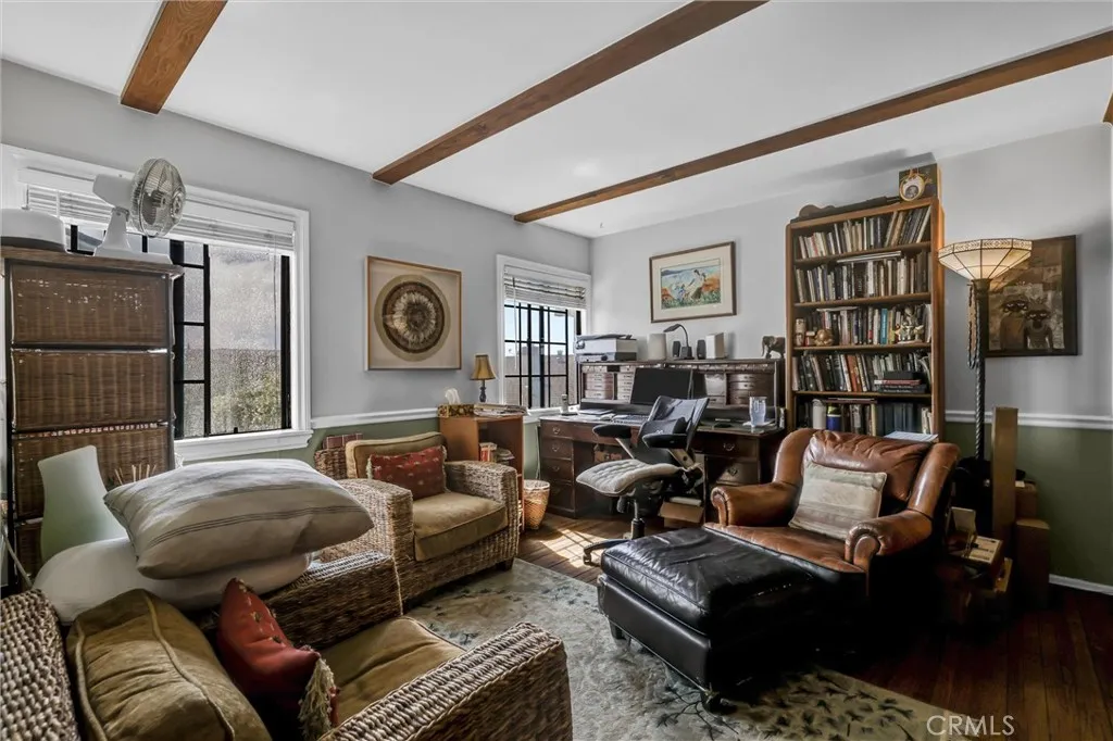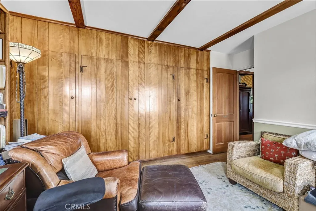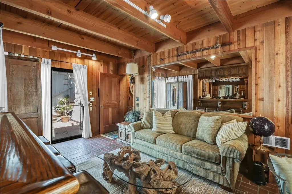 Situated on a 4,500 square foot hilltop lot, this residence offers exceptional views of the Pacific coastline and over 3,100 square feet of total living space. The main residence spans over 2,300 square feet across three levels and includes three bedrooms and two bathrooms. The interior features a spacious living room with a fireplace and open beam ceilings. Additional amenities include a walk-in sauna, an in-ground spa, and a den equipped with a solid oak bar and wine locker. The entire top floor is dedicated to a master suite featuring a private bathroom and walk-in closet. The property also includes a 700+ square foot rear apartment. This two-bedroom, one-bathroom unit offers a large living room with a fireplace and views of both the ocean and Catalina Island. Parking and utility features include a three-car garage with laundry facilities for the rear unit. Adjacent to the garage is an additional "bachelor" unit with a private bathroom, which has historically been reserved for personal use.