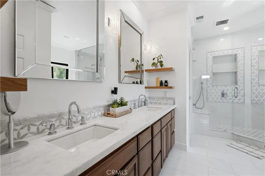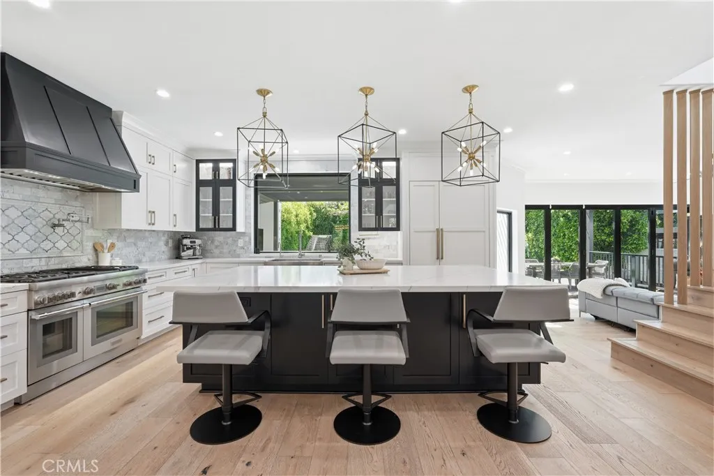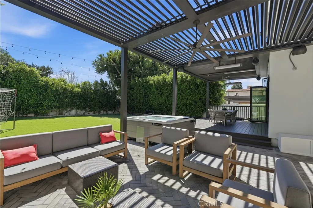 This turn-key, like-new, immaculately maintained custom home on a massive flat 7,500+ sq ft lot has been renovated and reimagined inside and out. At nearly 4,000 sq ft, every room is well-proportioned and thoughtfully designed, offering six bedrooms (or five plus a large home office) across two spacious levels. While featuring a modern open layout, its custom woodwork, natural finishes, and unique floor plan blend warmth with modernitydelivering the best of both design styles. Most notably, the home offers a rare gated front yard with a lush backdrop of mature ficus hedges extending along the perimeter of the huge, flat backyard, featuring multiple private outdoor spaces designed for both entertaining and everyday living. Elegant double doors from the front living room create a seamless extension to the lush, private front yardideal for play, gatherings, or quiet afternoons. The thoughtful interior layout flows from the dining space, with a custom-built-in buffet, to a stunning chefs kitchen featuring premium appliances, abundant custom cabinetry, a quartz island, a walk-in pantry, and a striking glass-enclosed wine room. The layout provides sightlines to both front and rear yardsan ideal setup for family living and hosting. Expansive La Cantina doors open onto a covered patio designed for gatherings, including an outdoor dining space for al fresco family meals or hosting under the stars. The outdoor living areas include a louvered pergola, built-in BBQ and smoker, outdoor fireplace, spa, surround sound, built-in space heaters, and multiple seating areas, all overlooking a