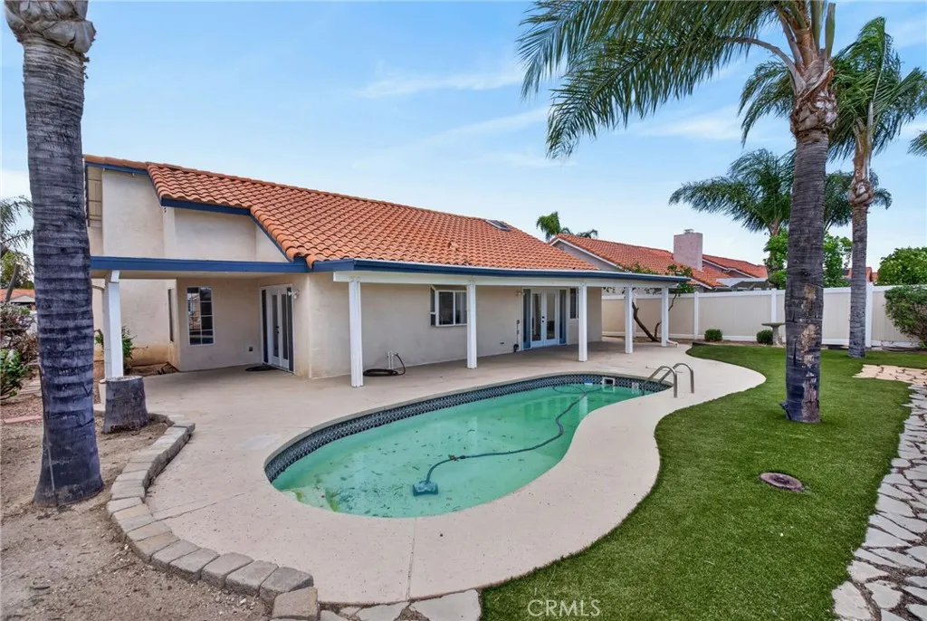 This charming home is located in Menifee's desirable 55+ Community. Interior of the home has been freshly painted along with new vinyl plan flooring and carpet throughout. Family room with cozy fireplace, dining room, in kitchen eating area, spacious bedrooms, indoor laundry, den and office. The home has a lot of light and feels spacious. Nicely landscaped yards with covered patio and pool out back. Home backs up the the Salt Creek Trail with direct access to the trail.