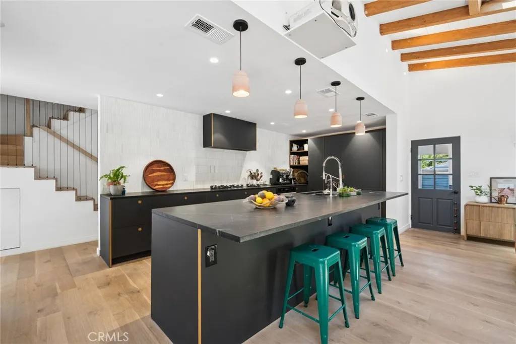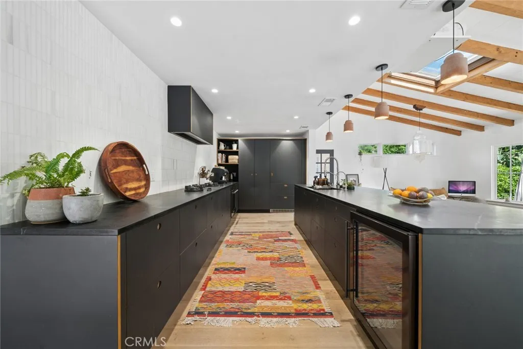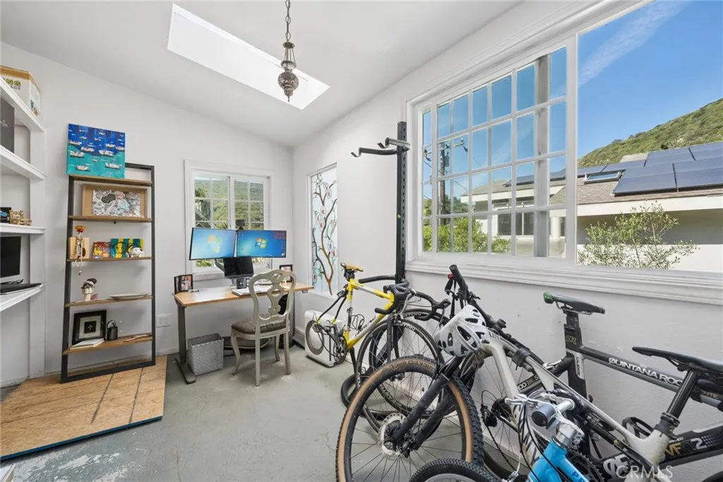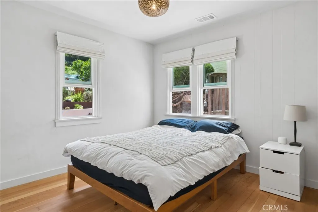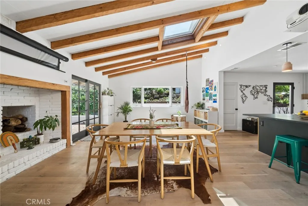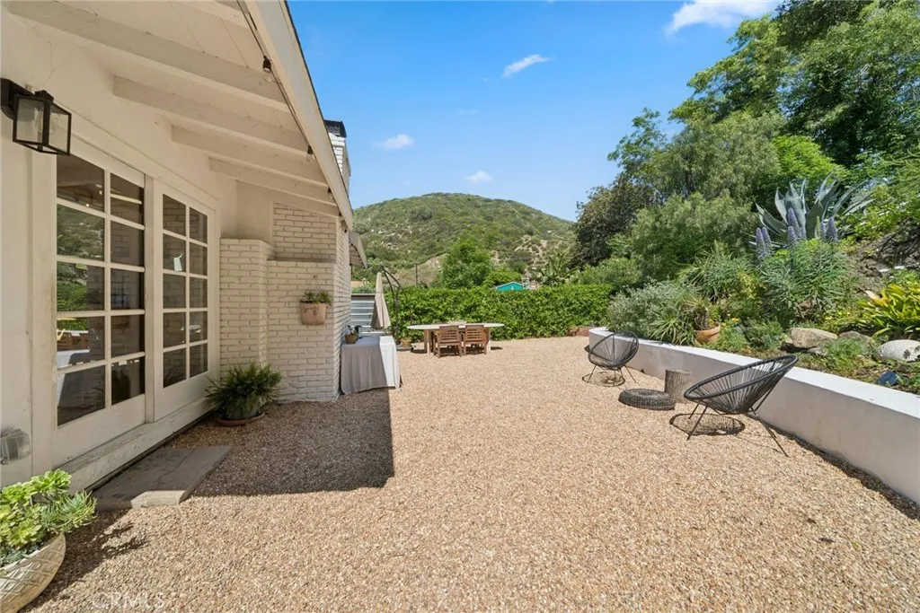 Tucked into the serene enclave of Canyon Acres, a quiet, no-through-traffic community, this beautifully remodeled, fully furnished home is a rare opportunity to truly live immersed in Laguna Beach, not just visit it. Set on nearly a third of an acre shaded by large, mature oak trees and surrounded by lush gardens, the property offers a sense of privacy and natural beauty that's increasingly hard to find. Canyon hill views stretch from the main living areas and the upstairs master suite, where a dedicated ensuite office makes working from home feel like anything but work. Inside, the home is warm, clean, and considered; soaring beamed ceilings, rich wood floors, and a wood-burning fireplace give the main living space a grounded, organic character that's both elevated and livable. The kitchen is equipped with a reverse osmosis water system with electrolyte re-addition, because the details here actually matter. The floor plan flows intuitively; a private guest bedroom on the main level offers flexibility and separation, while two bedrooms upstairs, including the master retreat with views and an ensuite office, provide a quiet retreat from the rest of the home. A separate ADU on the property adds yet another layer of versatility - ideal for a home office, studio, or creative space. Rounding it out: a dedicated laundry room, a barrel sauna, solar and driveway parking for three. Step outside and the property opens up expansive, private outdoor spaces made for morning coffee under the oaks and long evenings around the fire. Direct trail access from the neighborhood connects to La