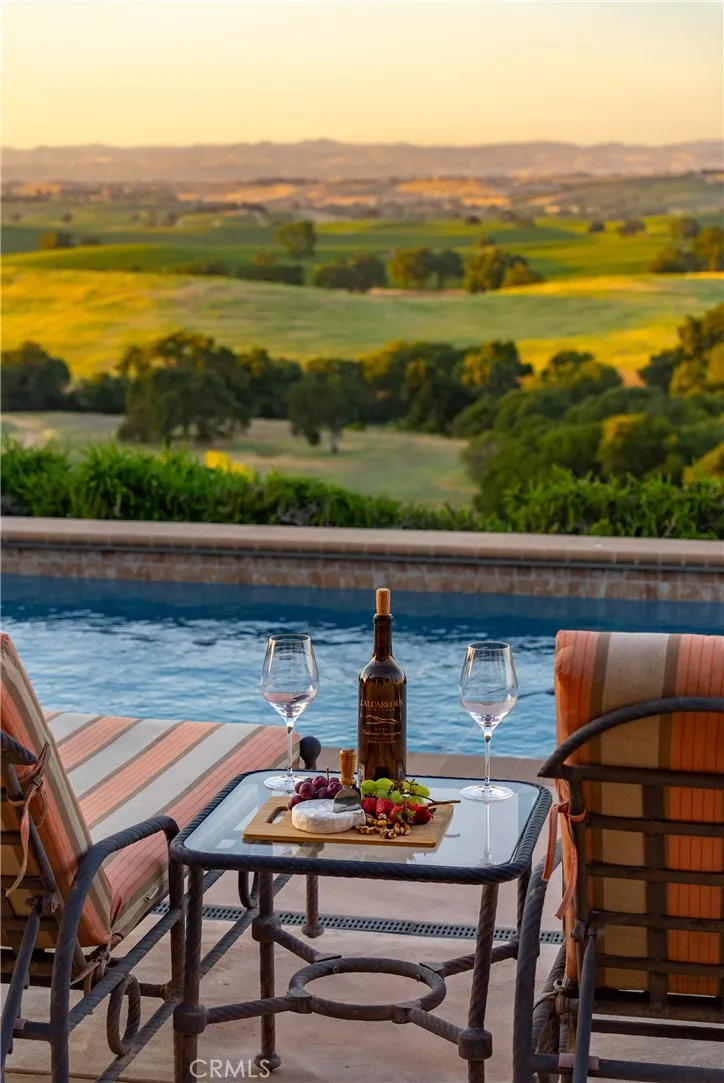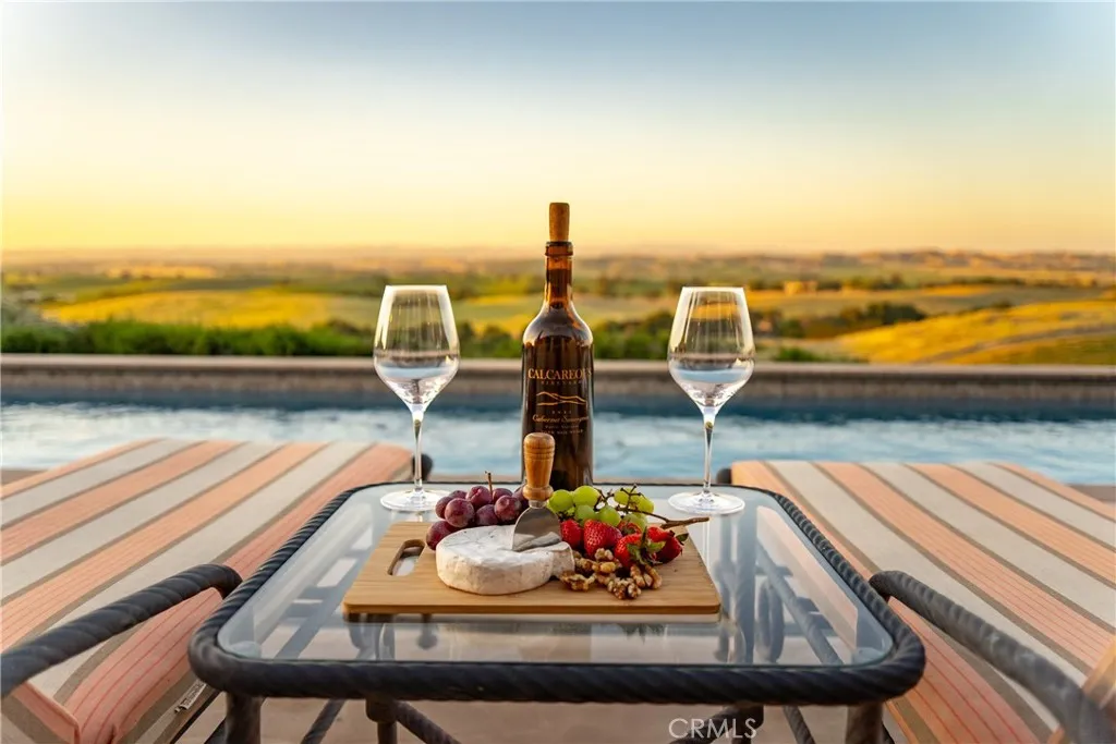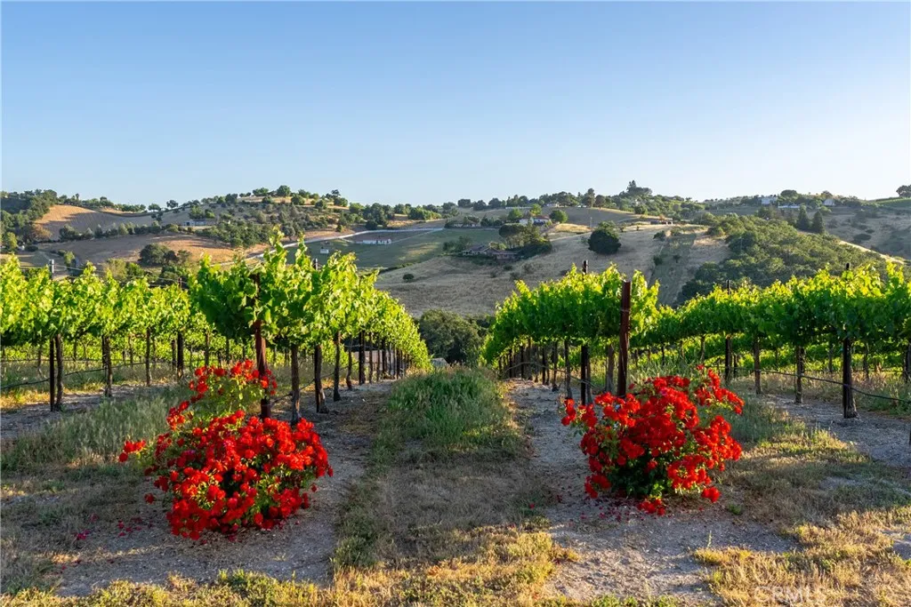 Experience elevated Wine Country living on this exceptional 36 acre estate, ideally located just minutes from Templeton and Paso Robles. Showcasing impressive sweeping views of rolling hills and vineyards, this fully fenced and gated property offers exceptional privacy along with lifestyle, income potential, and future opportunity. The 3,518 sq ft custom home features an open floor plan with soaring beamed ceilings, abundant natural light, and recent updates including fresh interior paint and new lighting for a bright, refreshed feel. Designed for entertaining, the home flows seamlessly to a covered patio, 75-ft lap pool, and spaperfect for enjoying the peaceful surroundings. Approximately 14 acres of established vineyard (Merlot & Petite Sirah)in the desirable El Pomar District of the Paso Robles AVA offer fertile, irrigated ground with a strong production historyideal for a boutique vine-to-glass venture, hobby winemaking, or potential agricultural tax benefits. An additional 22 acres of usable and oak-studded land, along with a newly installed well, opens the door for expansionwhether a second residence, equestrian setup, or barndominium. Currently a successful short-term rental generating approximately $165,000 annually, this property offers both immediate income and long-term upside. Privacy, views, and versatilitythis is Wine Country living with endless potential.