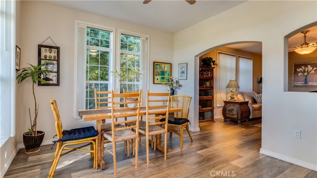 Tucked within the highly sought-after Indian Hills 55+ community of San Luis Bay Estates, 148 River View is a beautifully updated Craftsman-style home that blends comfort, flexibility, and serene Central Coast living. Built in 2005 and thoughtfully enhanced, this light-filled residence welcomes you with expansive front windows and warm luxury vinyl plank flooring that create an inviting, airy atmosphere throughout. Designed for both everyday living and effortless entertaining, the home offers three spacious bedrooms, two bathrooms, and a versatile office that can easily adapt to your needs. At the heart of the home, the generous kitchen features a center island, stainless steel appliances, a cozy breakfast nook, and built-in desk and storageperfect for staying organized while enjoying the space. Stylish pendant lighting adds a modern touch, while nearby access to the indoor laundry room and tandem two-car garage ensures convenience. The primary suite serves as a private retreat, complete with a soaking tub, separate shower, dual-sink vanity, and direct access to a peaceful deck overlooking the gardenan ideal spot to start or end your day. Two additional bedrooms and a full guest bath provide comfortable accommodations for visitors. Step outside to discover a thoughtfully landscaped backyard with mature trees, privacy fencing, and charming brick and stone pathways that wind through the garden. A detached bonus room offers endless possibilities, whether used as a home office, guest quarters, or creative studio, while a dedicated golf cart garage adds extra practicality. With