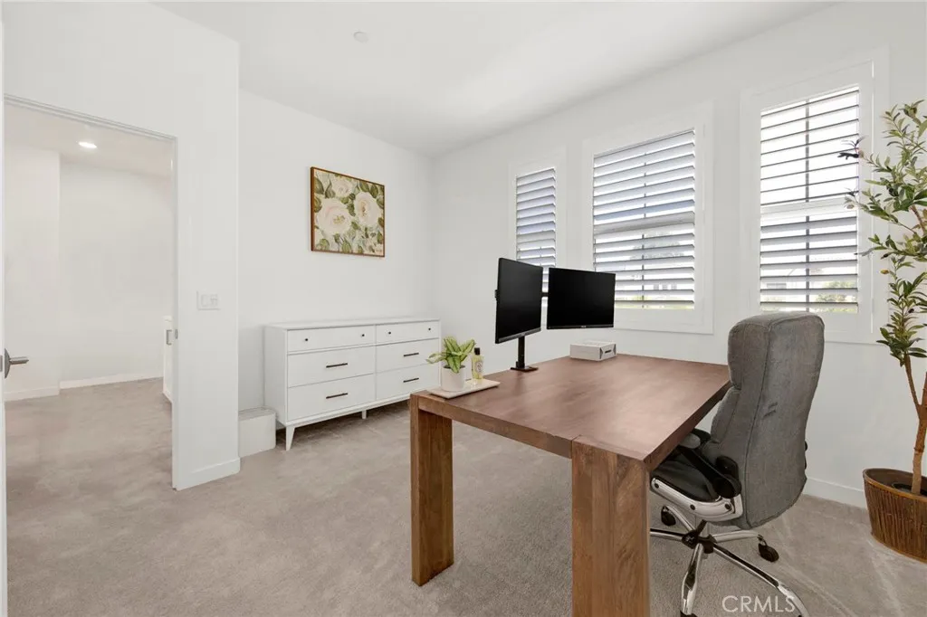 Welcome to 7370 Autumn Ave., a beautifully-crafted built in 2022 home located in the highly sought after master plan community of The Groves of Whittier. This impressive two-story home offers 4 bedrooms, 3 full bathrooms, and 2,207 square feet of thoughtfully designed living space, perfectly suited for families of all sizes and lifestyles. From the moment you step inside, you are greeted by a bright, open concept floor plan that effortlessly connects the living, dining, and kitchen areas, creating an inviting space for both casual gatherings and entertaining. The modern kitchen features stainless steel appliances, white soft close cabinetry, a walk-in pantry, and a large center island perfect for gathering. Soaring ceilings and an abundance of natural light elevate every corner of the home, while a main level bedroom and full bath offer ideal flexibility for guests or multigenerational living. Upstairs, the spacious primary suite serves as a true private retreat, complete with a large walk-in closet, soaking tub, separate walk-in shower, and dual sinks. A versatile loft provides the perfect flex space for a home office, playroom, or lounge. Two additional bedrooms, a full bath, and a dedicated laundry room complete the upper level. The home is packed with modern upgrades, including a whole-home water softener, reverse osmosis water filtration system for drinking water, leased solar panels, EV charging readiness in the attached two car garage, tankless water heater, smart home technology, LED recessed lighting, and central AC and heating, all designed for a comfortable and e